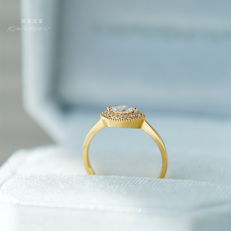 凯美珠宝轻奢培育钻石戒指女小众设计感18K金马眼钻高级感钻戒ins