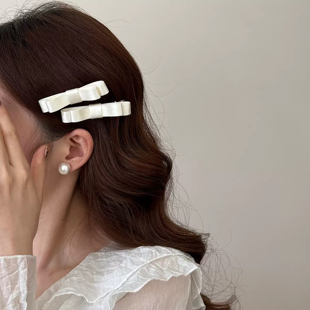 韩系新款缎面立体蝴蝶结发夹刘海夹碎发侧边夹少女气质碎发鸭嘴夹