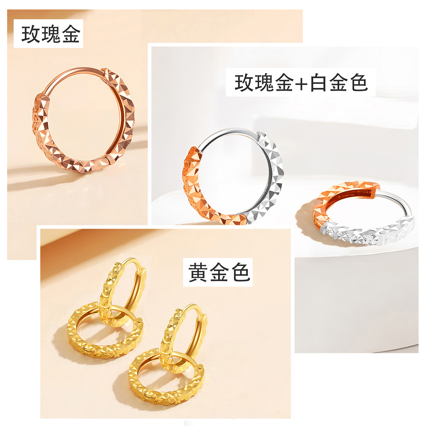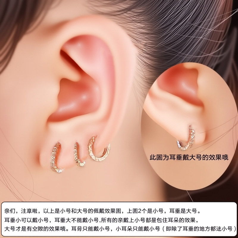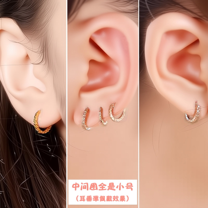 彩金纯14k金耳扣款式18k玫瑰金满天星小耳圈耳环侧耳骨耳钉耳饰女