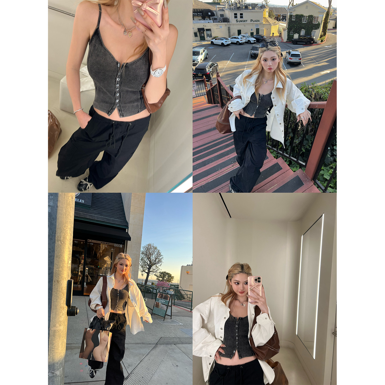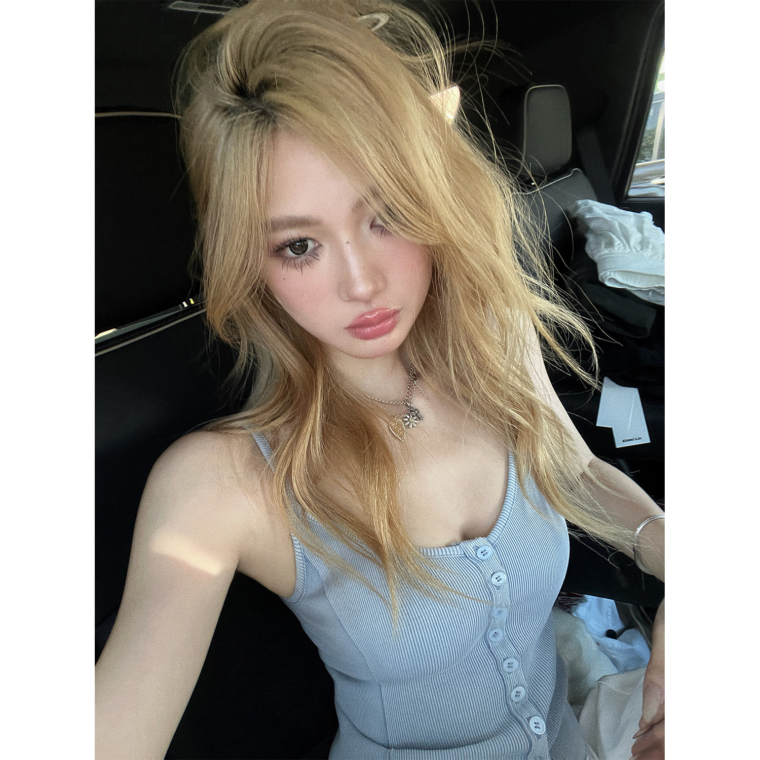 Xinlei Lin 海盐黑莓 D*es*l高克重炒雪花水洗坑条肌理针织吊带