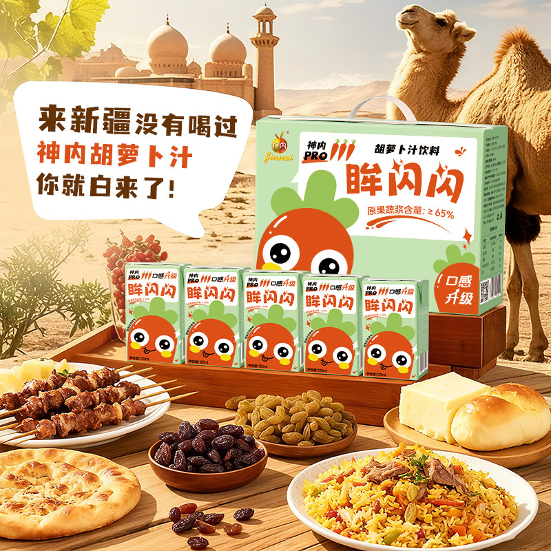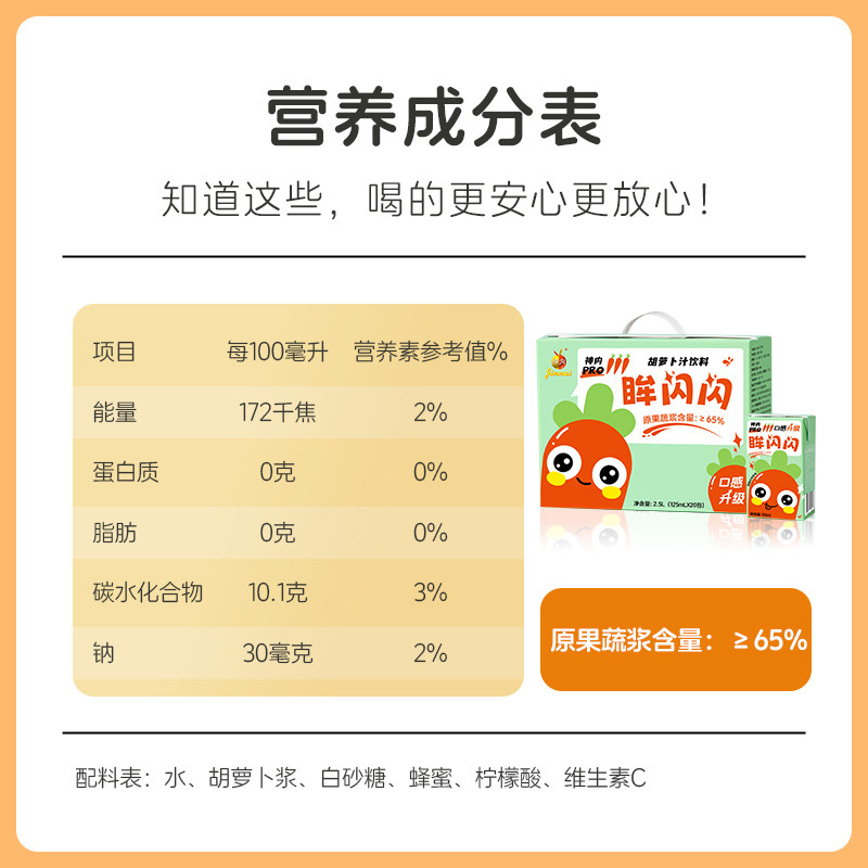 神内眸闪闪胡萝卜汁0脂肪整箱125ml*20盒维C纯果蔬汁饮品新疆特产