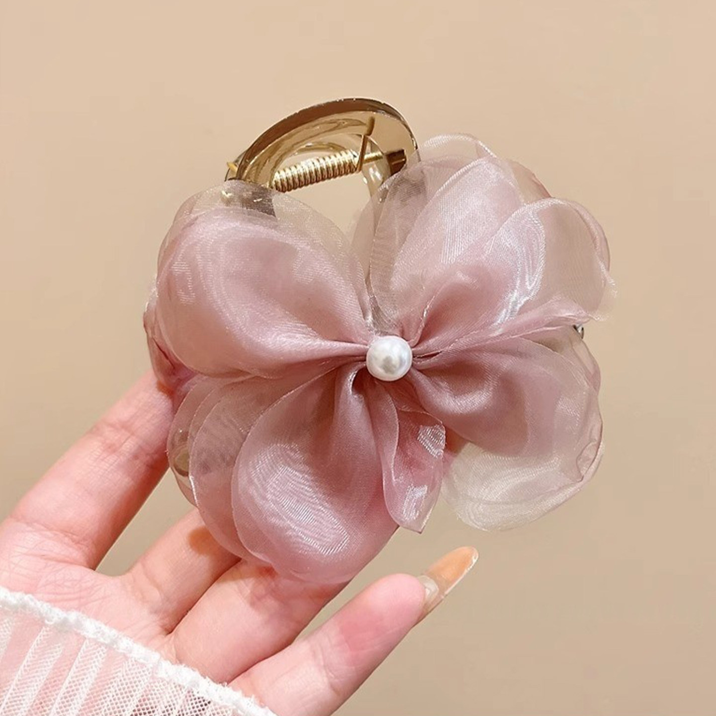 夏季半扎发粉色花朵抓夹头花发饰女2025新款后脑勺中号发夹头饰