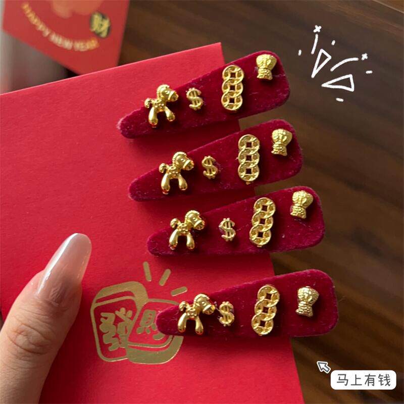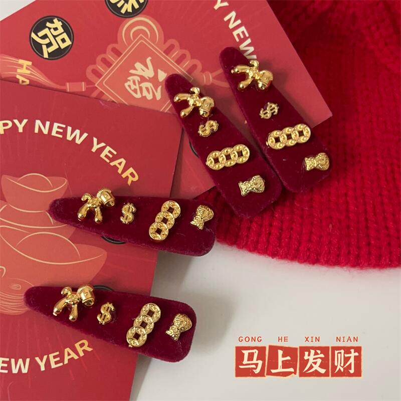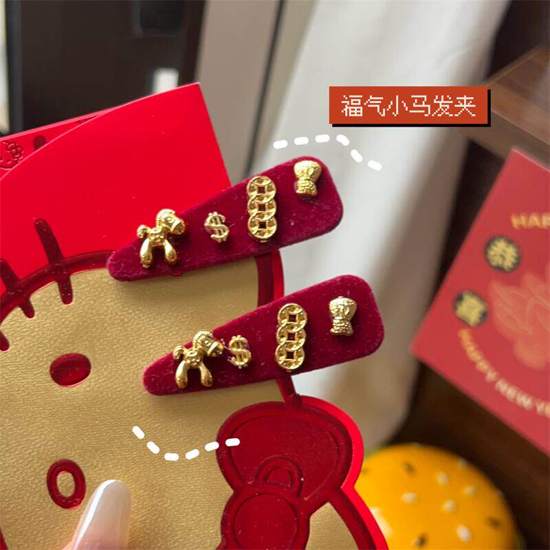 马上有钱~红色小马发夹边夹侧边发卡女高级感新年圣诞头饰刘海夹