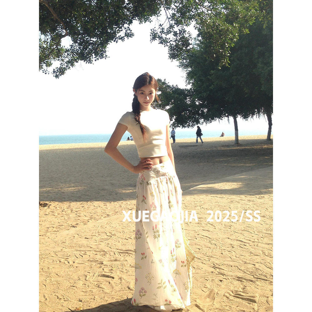 Creambaby Studio《风传花信》氛围感白色碎花半身裙女夏2026新款