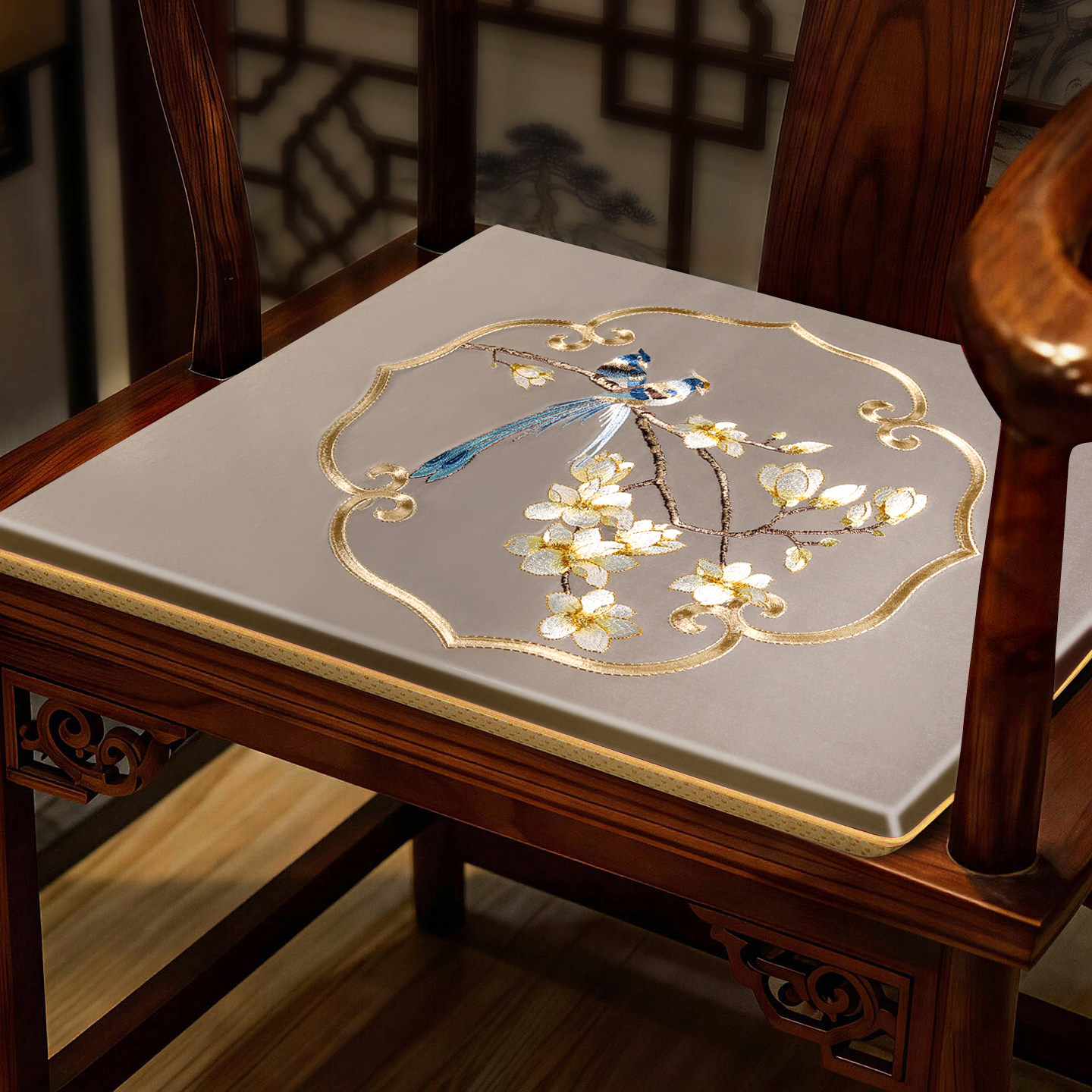 新中式红木椅子坐垫实木沙发垫圈椅太师椅餐椅座垫茶凳子垫定制