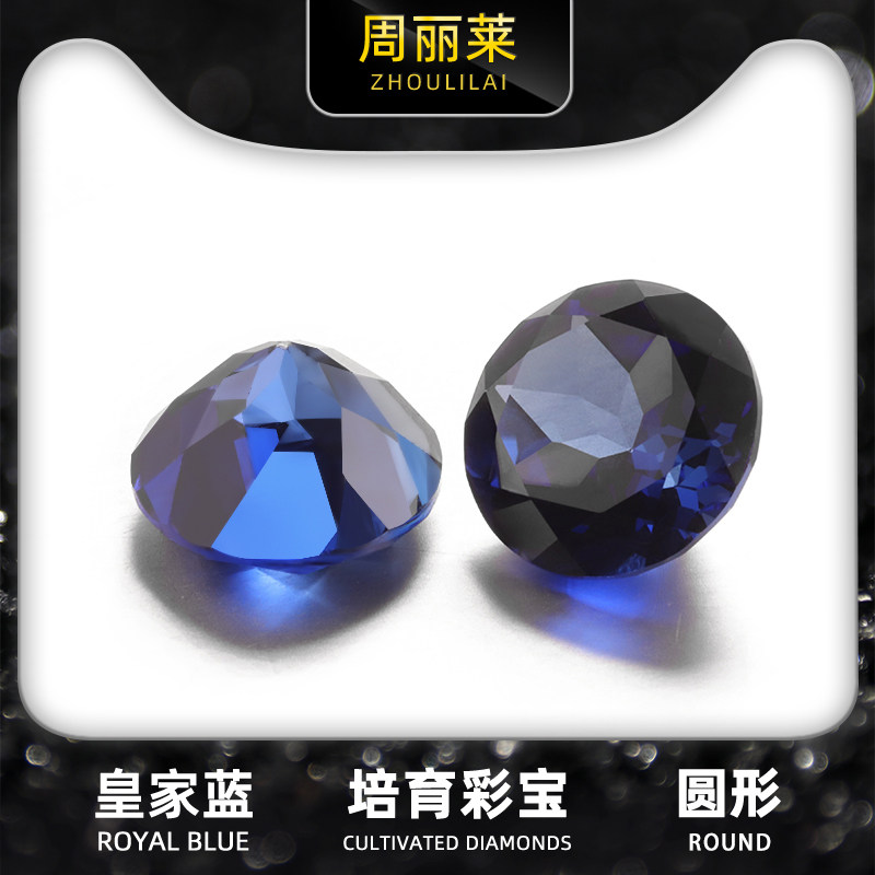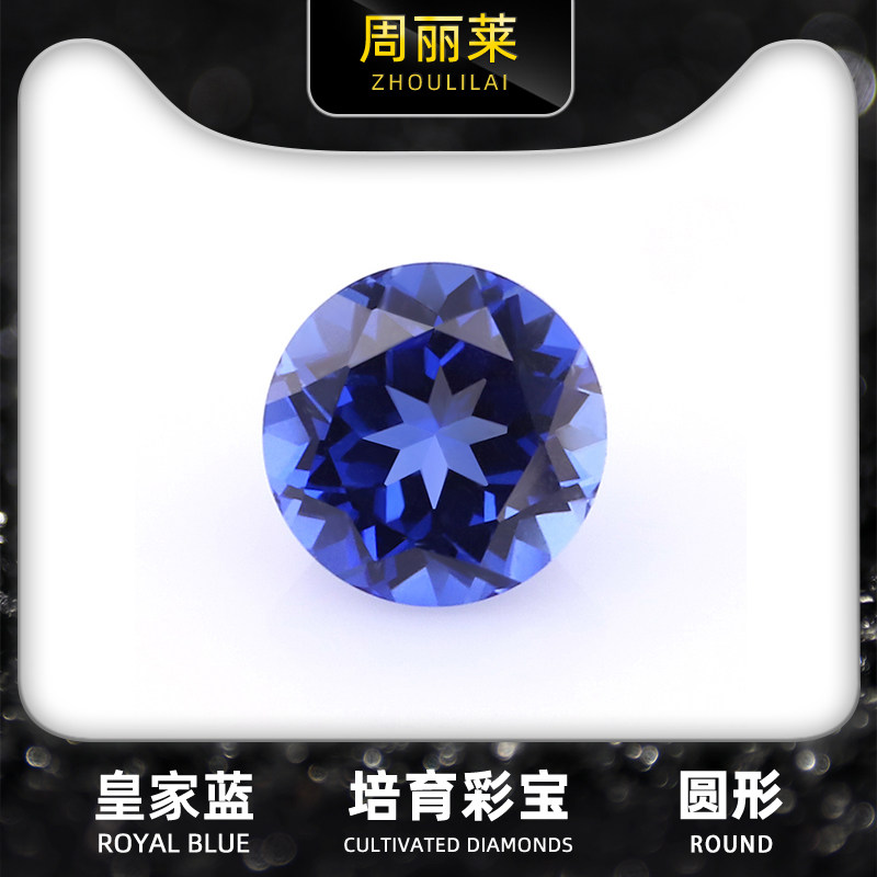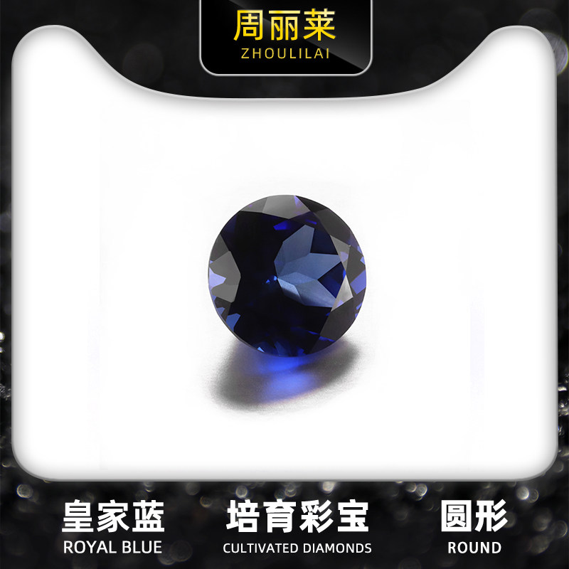 培育彩宝皇家蓝圆形实验室提拉法人工合成彩宝戒面