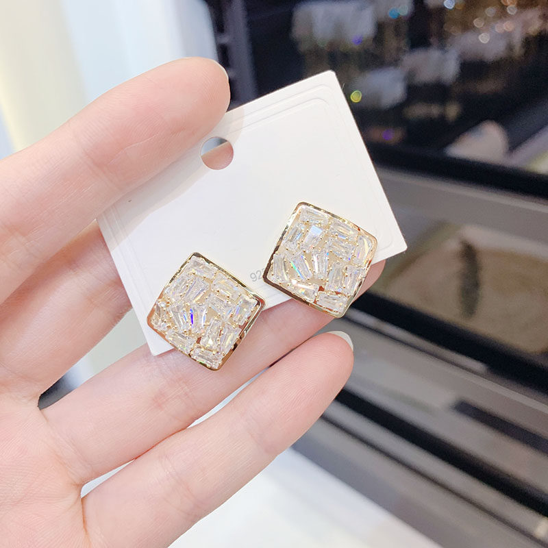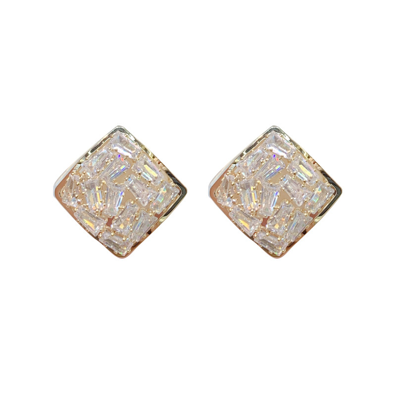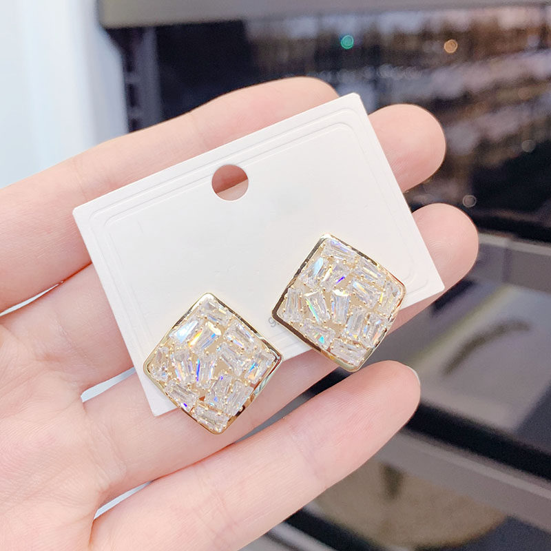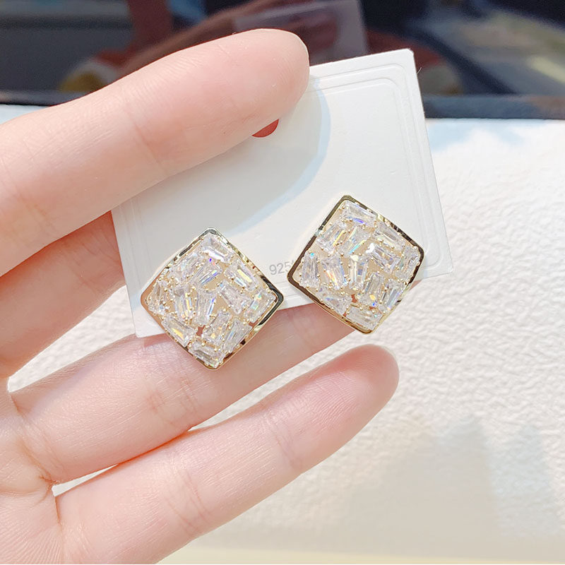 韩国气质时尚水钻菱形耳环2026年新款潮网红高级感耳饰银针耳钉女