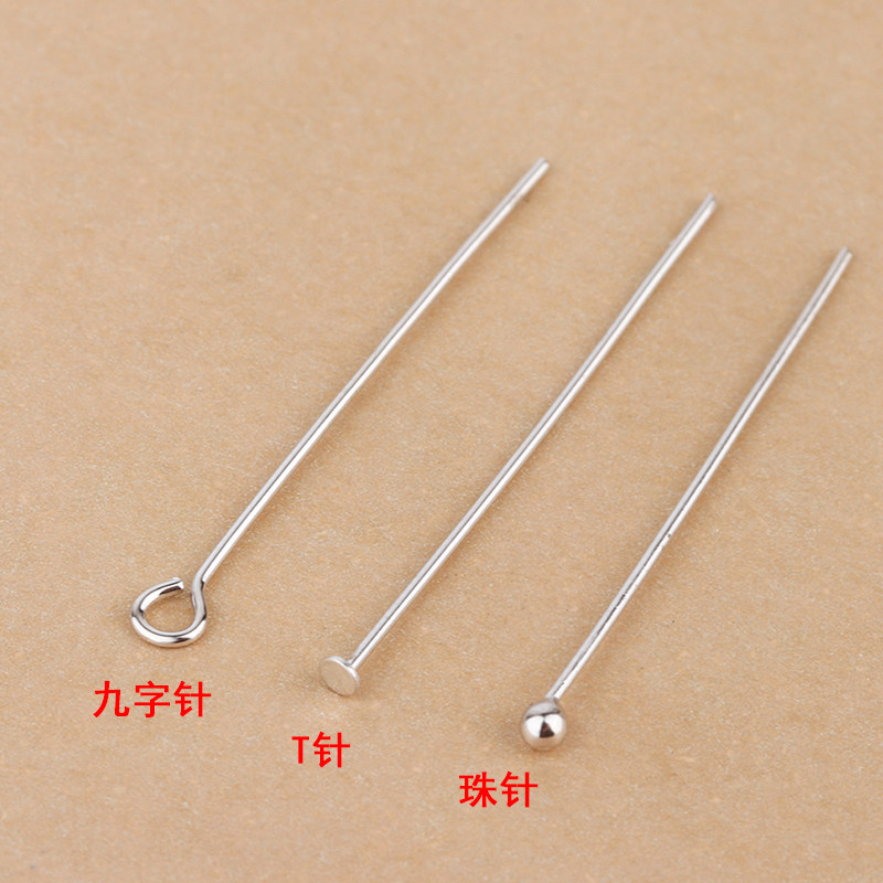 S925纯银DIY手链项链吊坠串珠手工银配件T字针平头针9字针圆头针