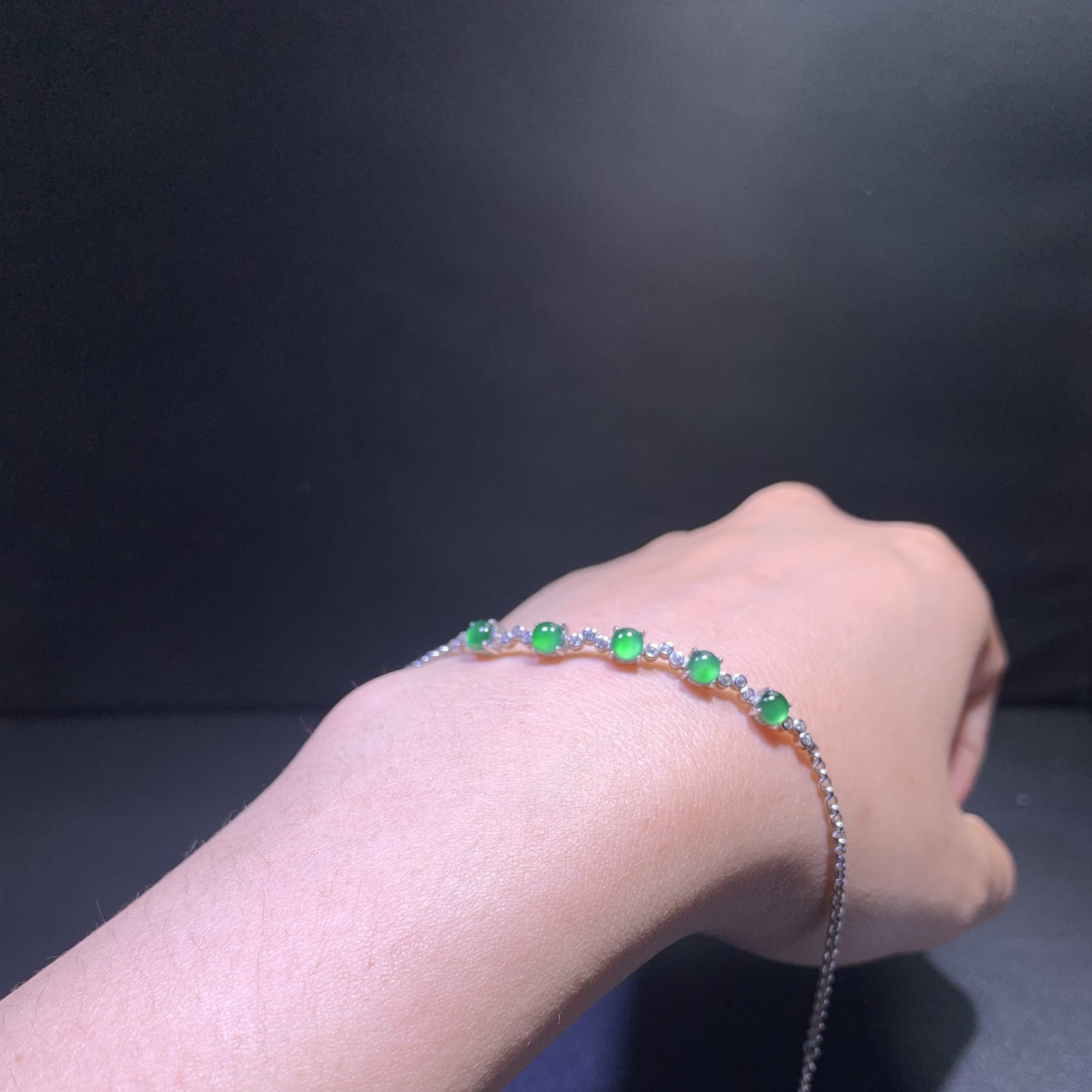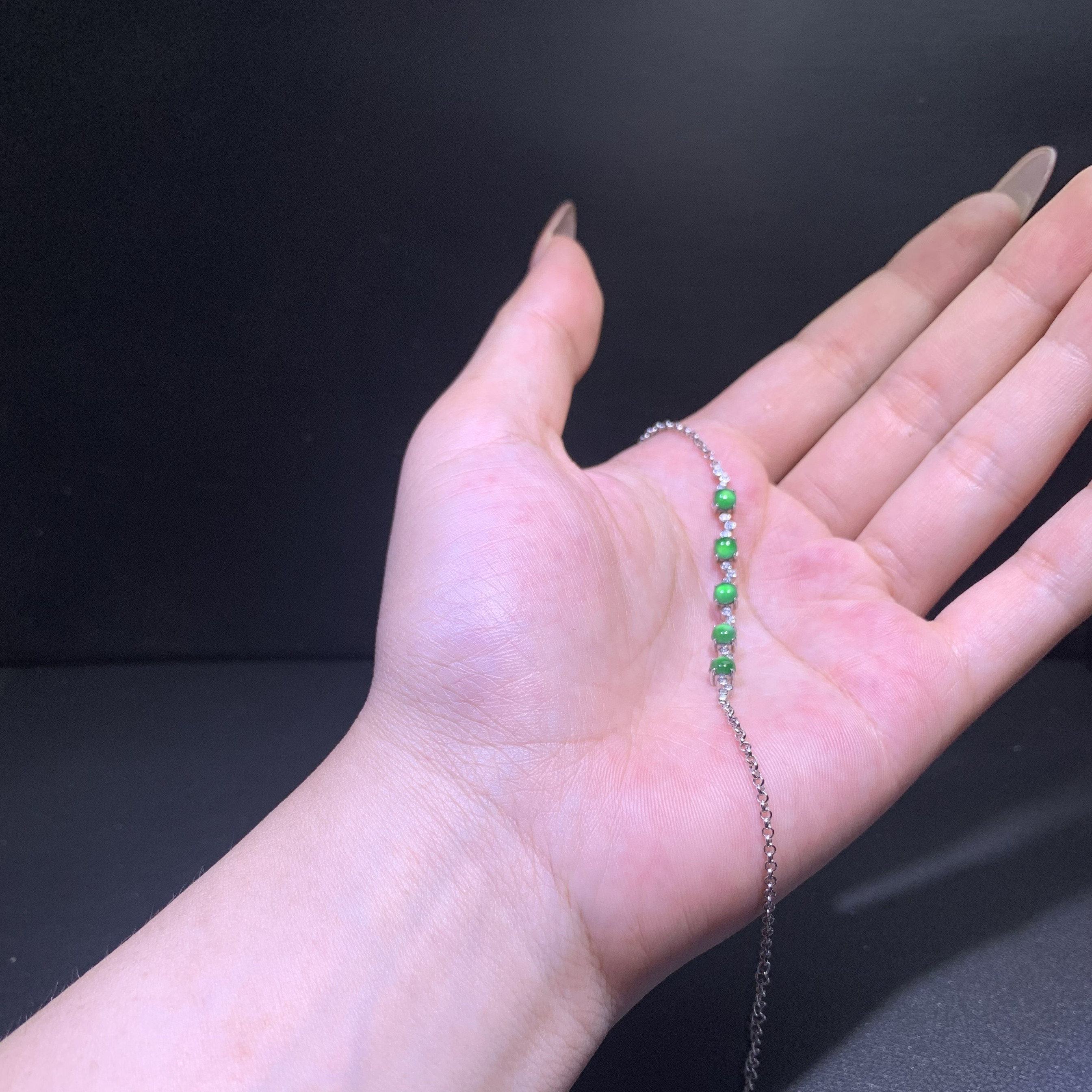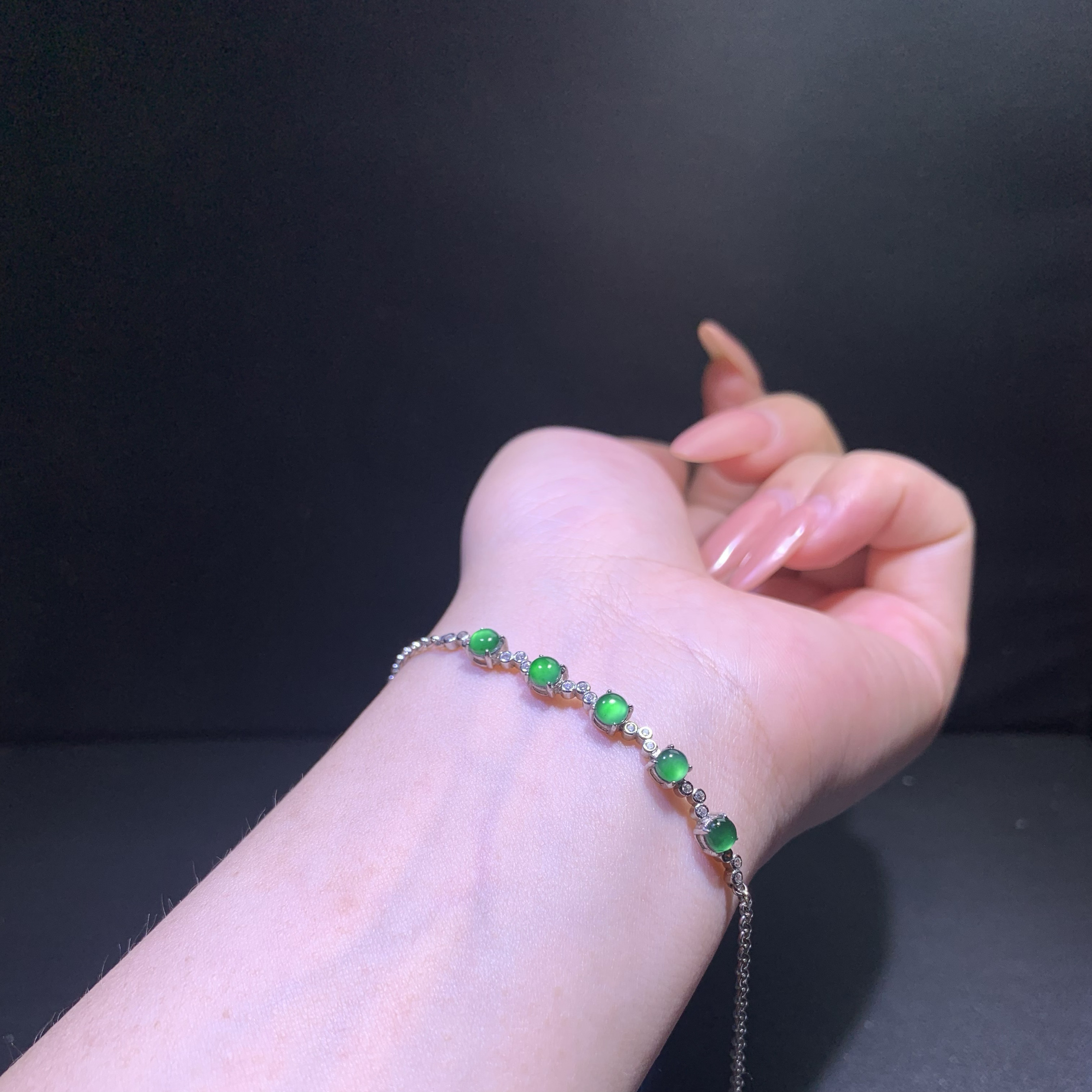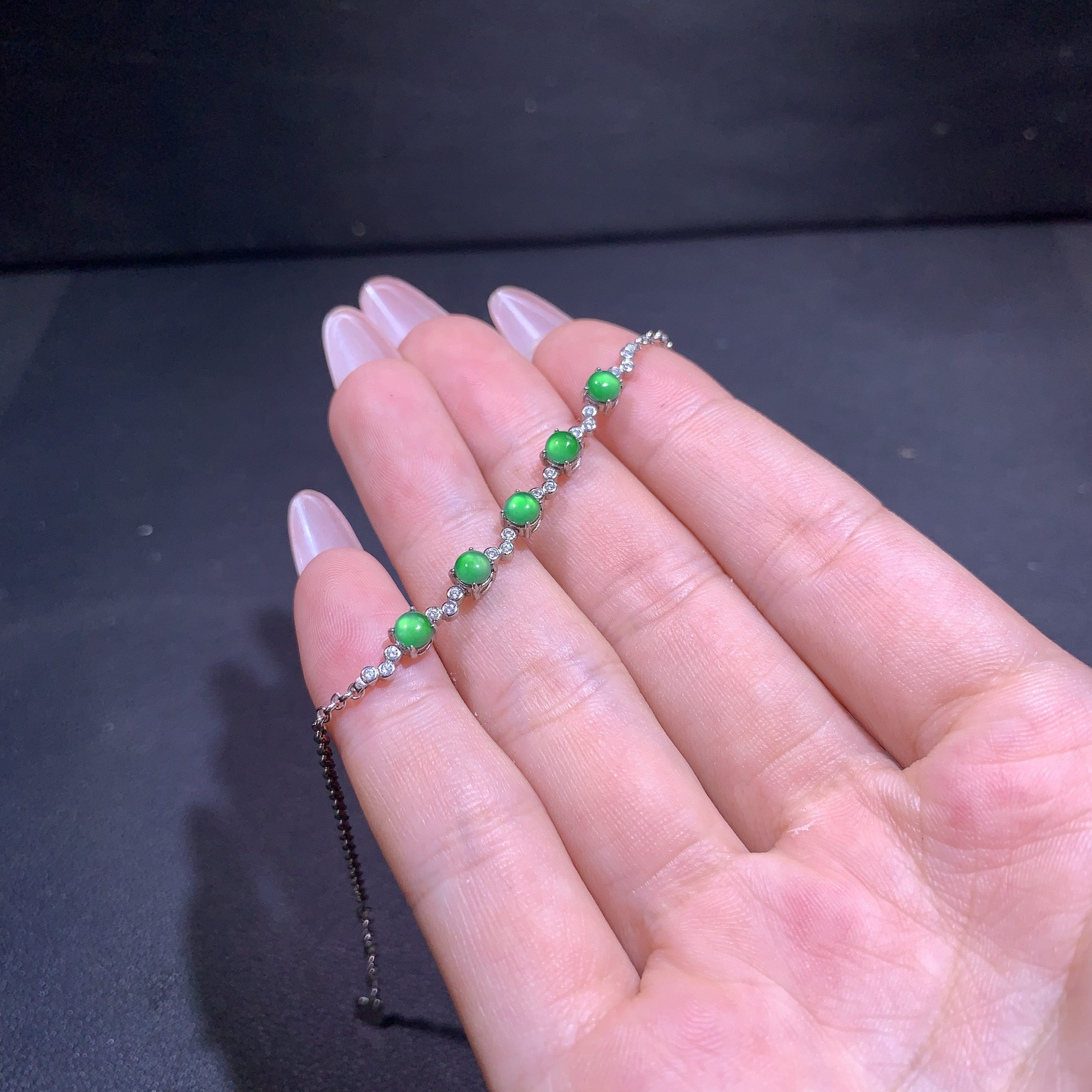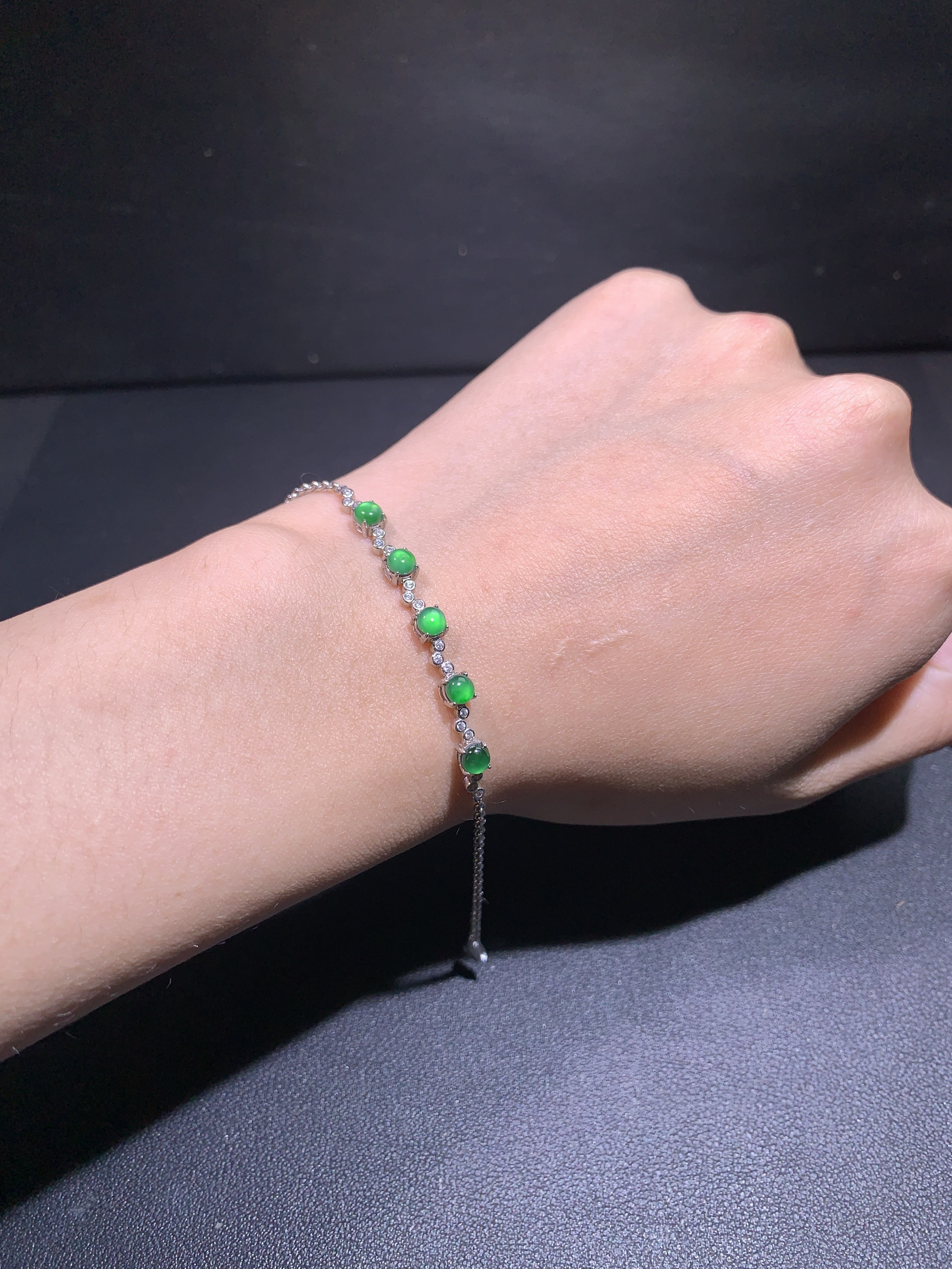 天然A货翡翠高冰阳绿蛋面手链S925纯银镶嵌玉石手饰轻奢高级感女