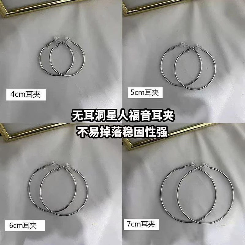 毕业季新款银色大耳圈超仙耳夹圆圈无耳洞耳钉大圈圈时尚气质耳环