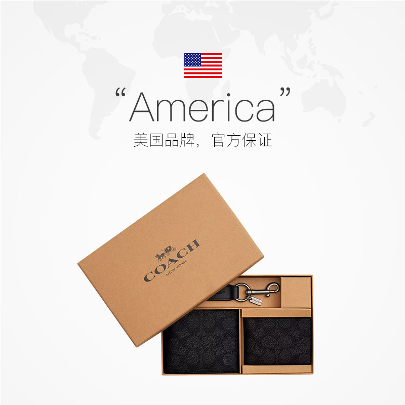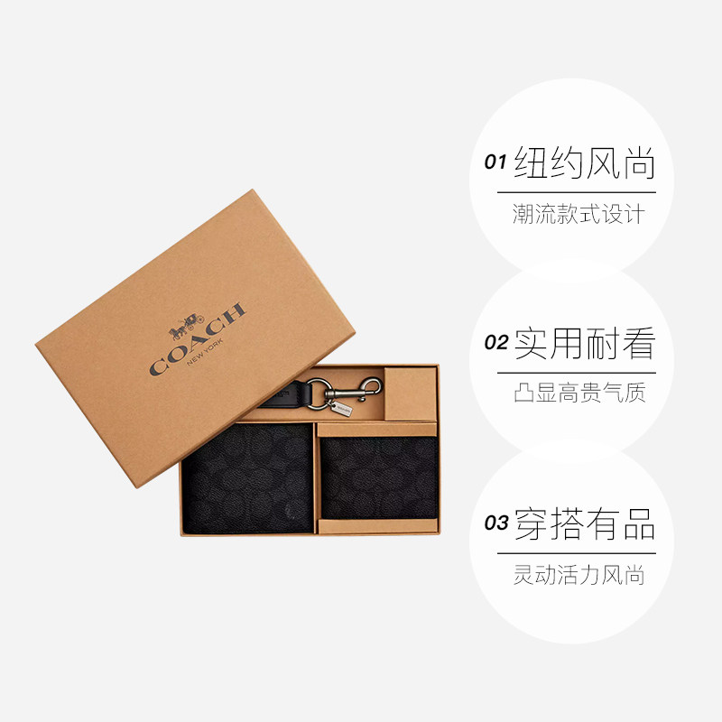 COACH/蔻驰钱包男士折叠短款钱包钱夹礼盒装送男友礼物