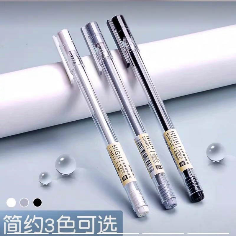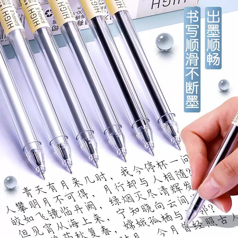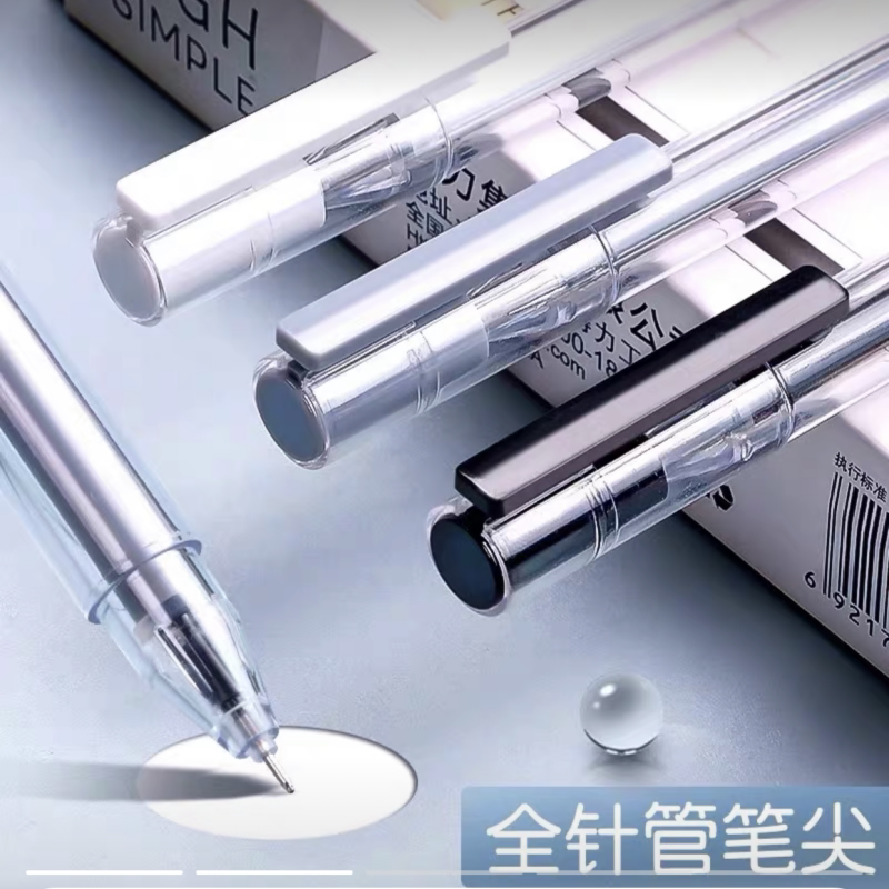 得力中性笔0.38黑色水笔芯特细碳素笔学生考试专用黑笔乐素全针管0.3财务会计记账办公用简约签字笔文具用品
