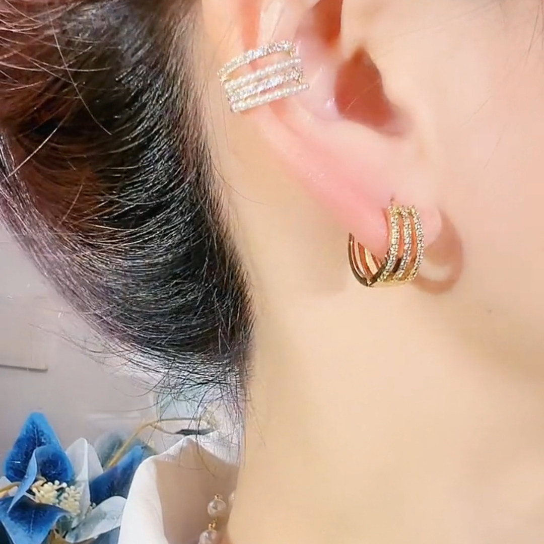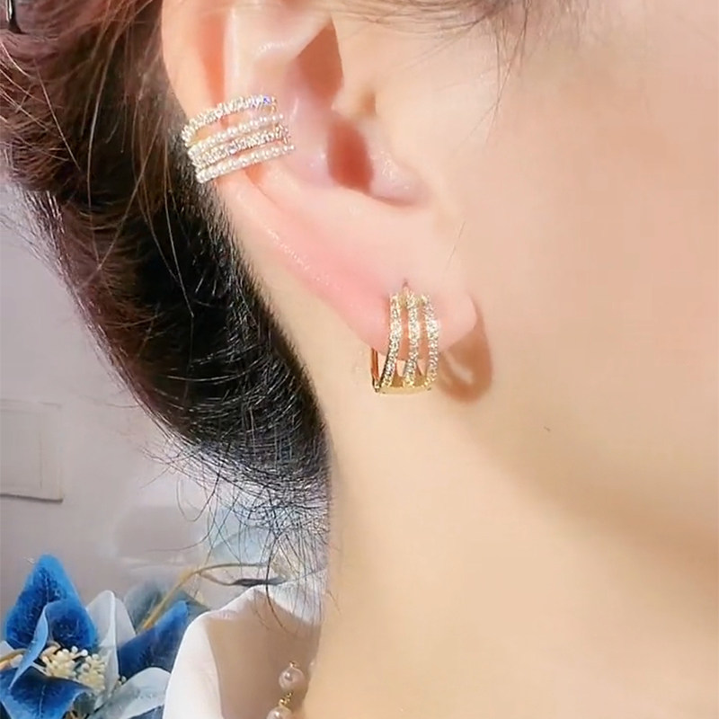 三生三世圆圈圈耳环新款潮气质百搭耳扣耳圈轻奢镶钻银针法式耳饰