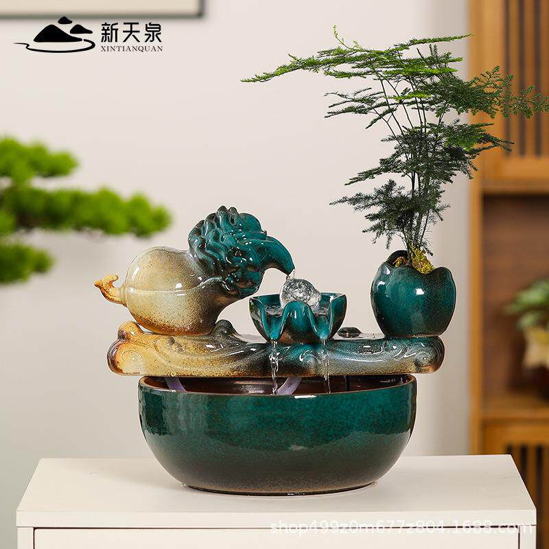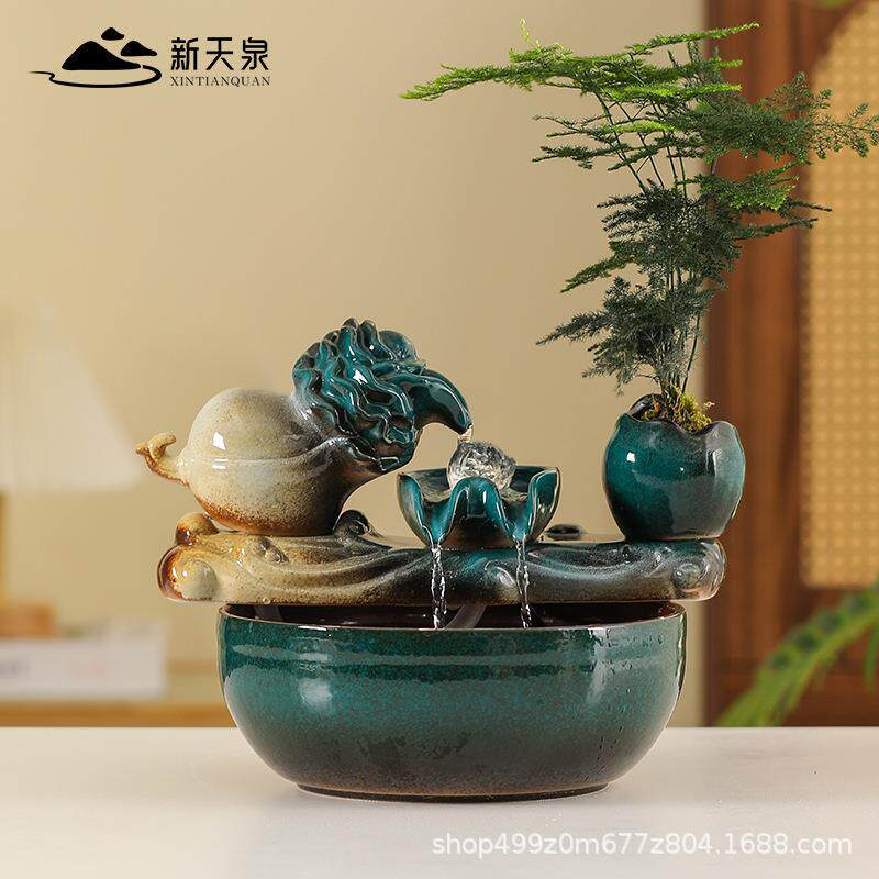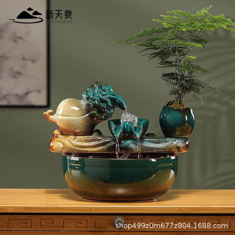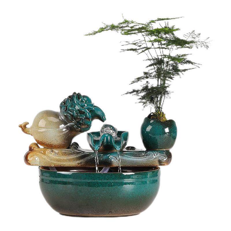 百财ZRF财流水摆循环水桌面陶瓷件鱼缸摆小型家用客厅办公室装饰