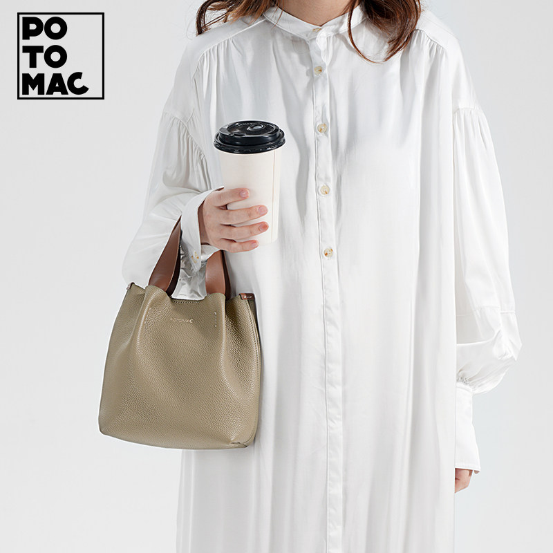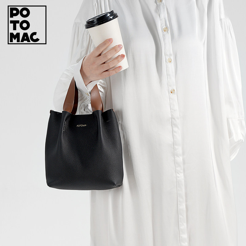 potomac手提包荔枝纹牛皮小包头层皮菜篮子包包通勤百搭真皮女包