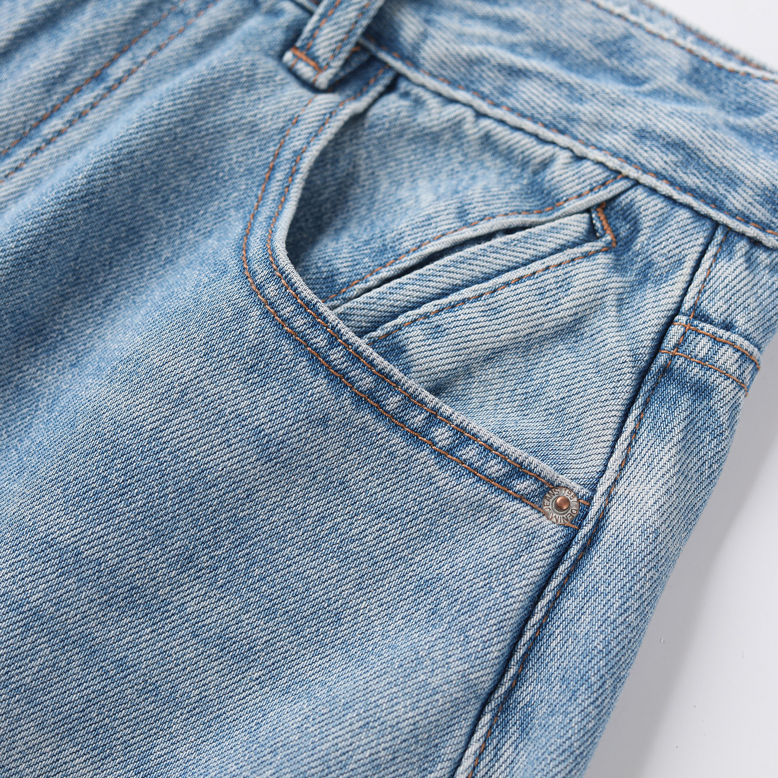 wana try100%棉复古水洗弯刀裤2026春季新品浅蓝时髦百搭牛仔裤女