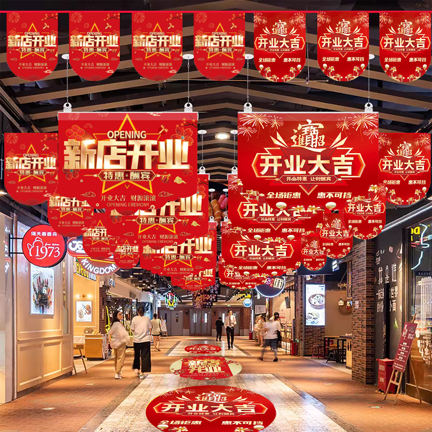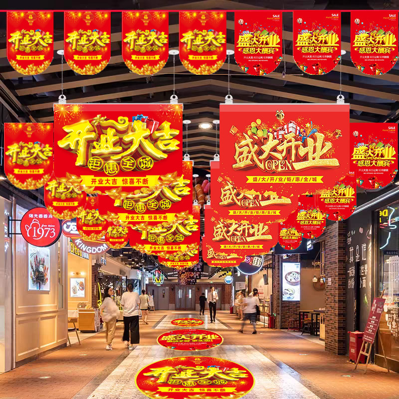 开业大吉吊旗定制海报广告县挂杆活动串旗新店开业地贴橱窗贴纸