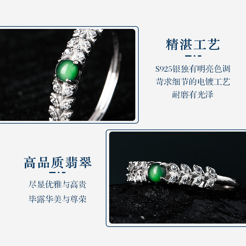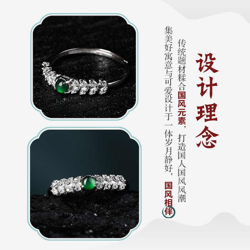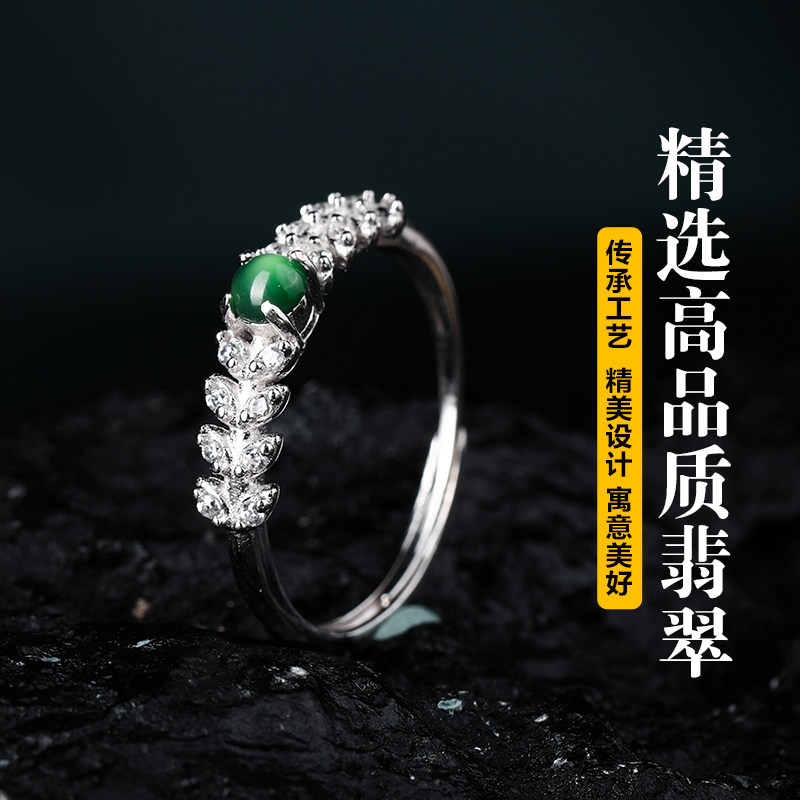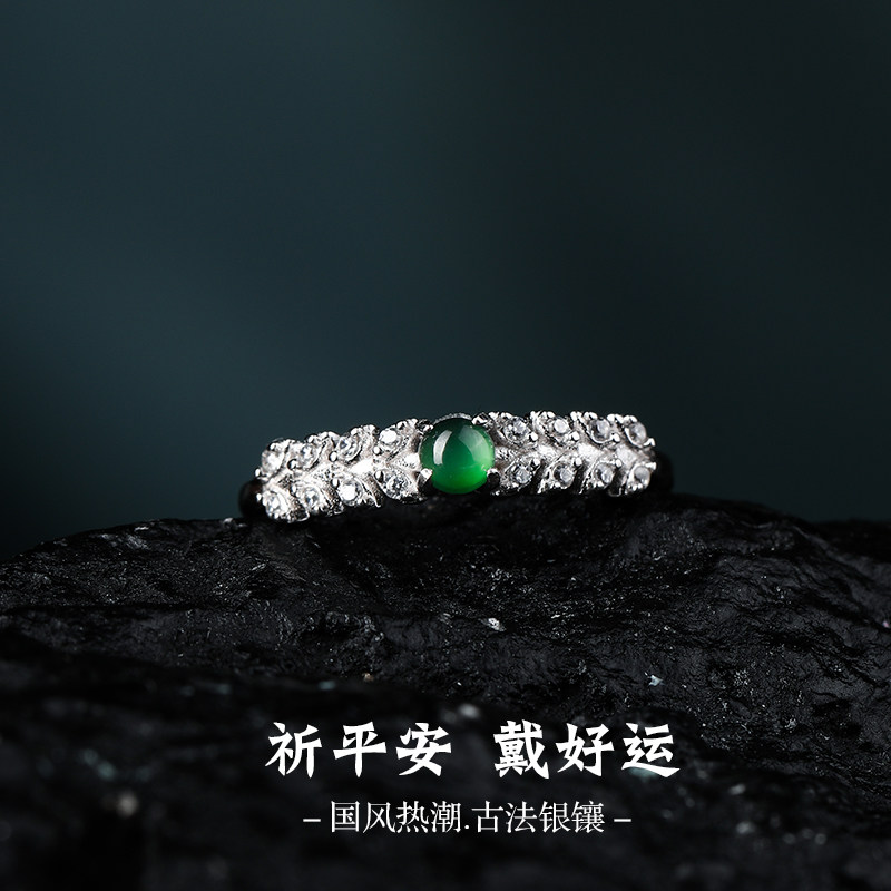 七彩云南银镶天然翡翠戒指女款复古风新中式冰种宝石手饰精美礼物