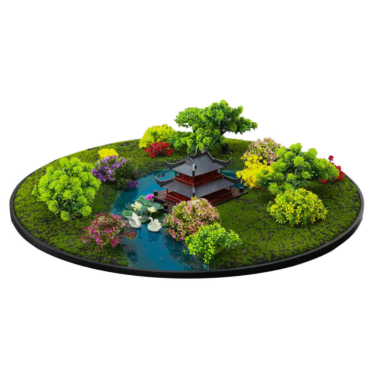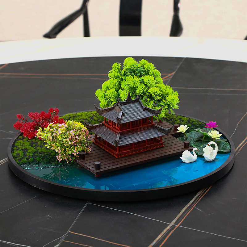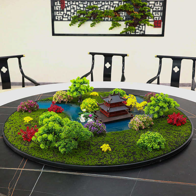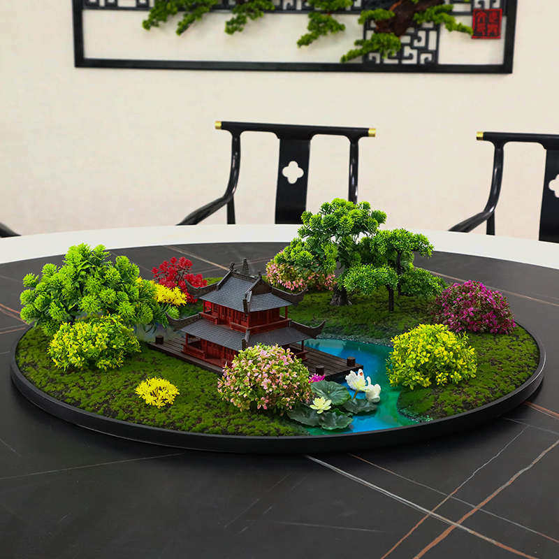 新中式酒店餐桌转盘装饰品摆件微缩艺术景观餐厅圆形桌花圆桌摆花