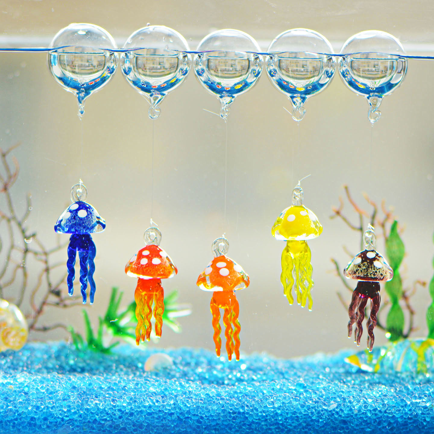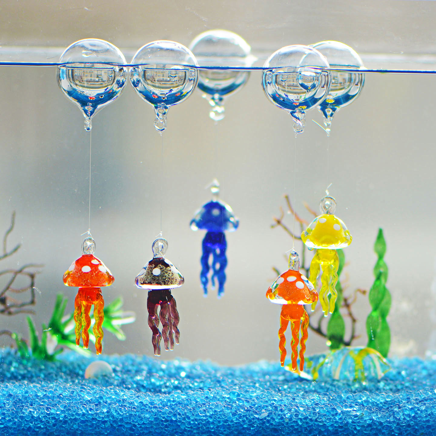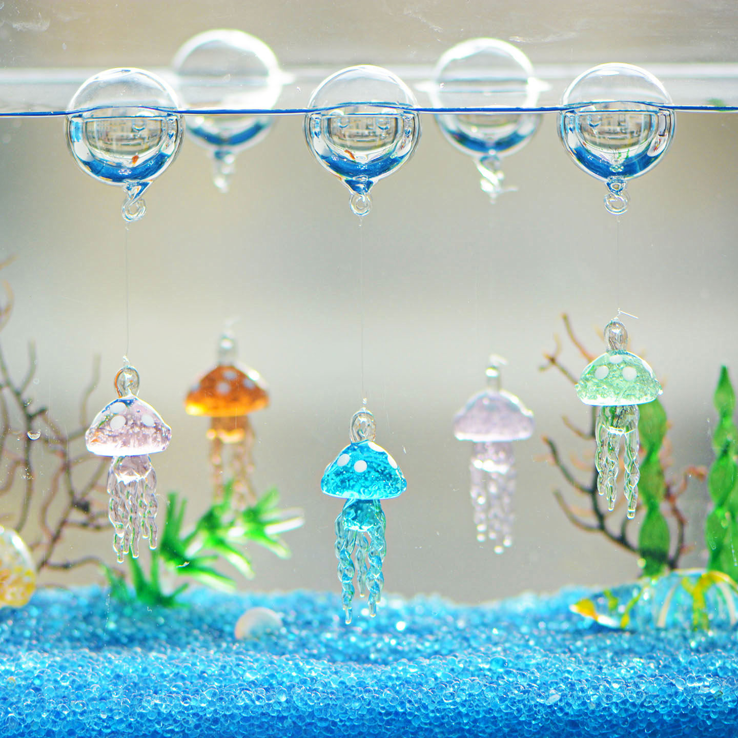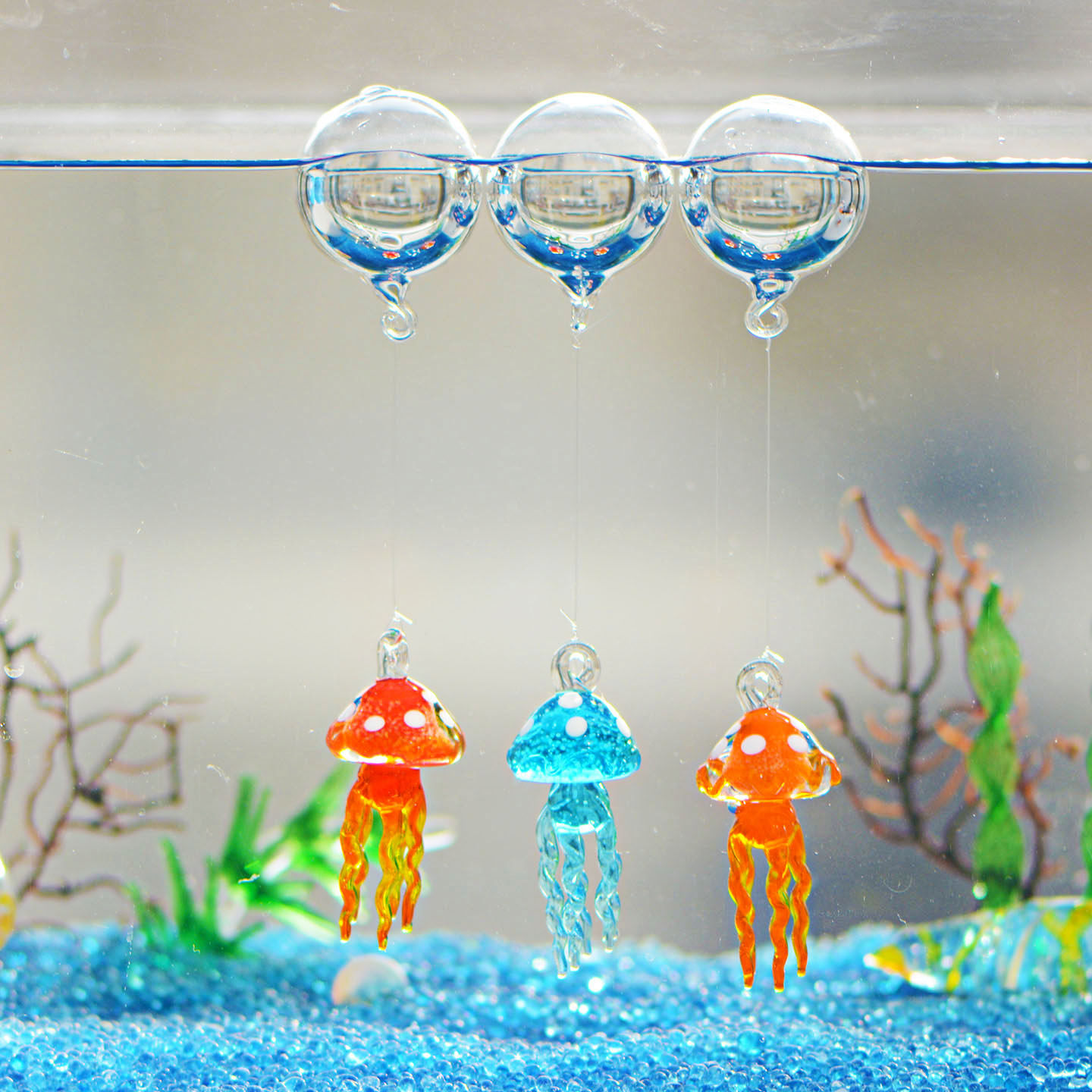 鱼缸悬漂浮饰品玻璃夜光琉璃水母浮球泡泡创意花瓶微景观装饰造景
