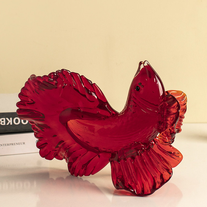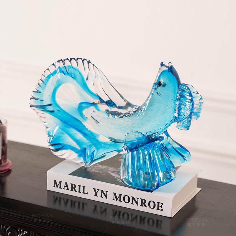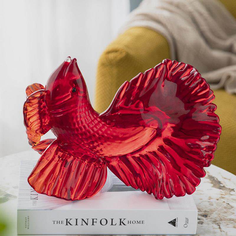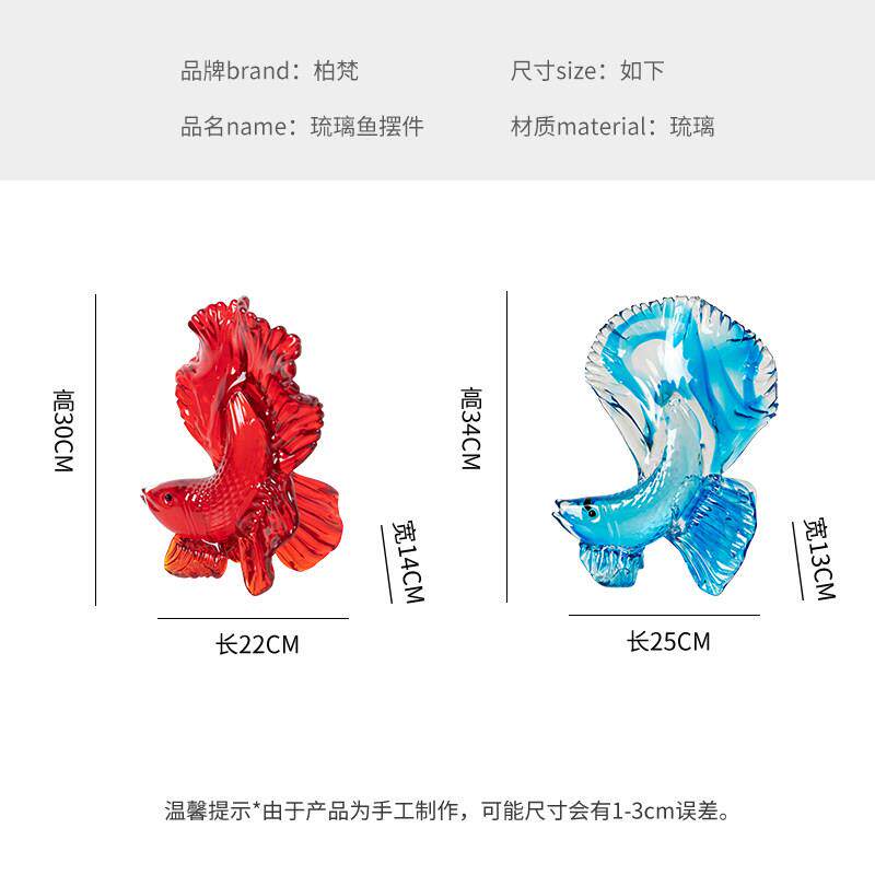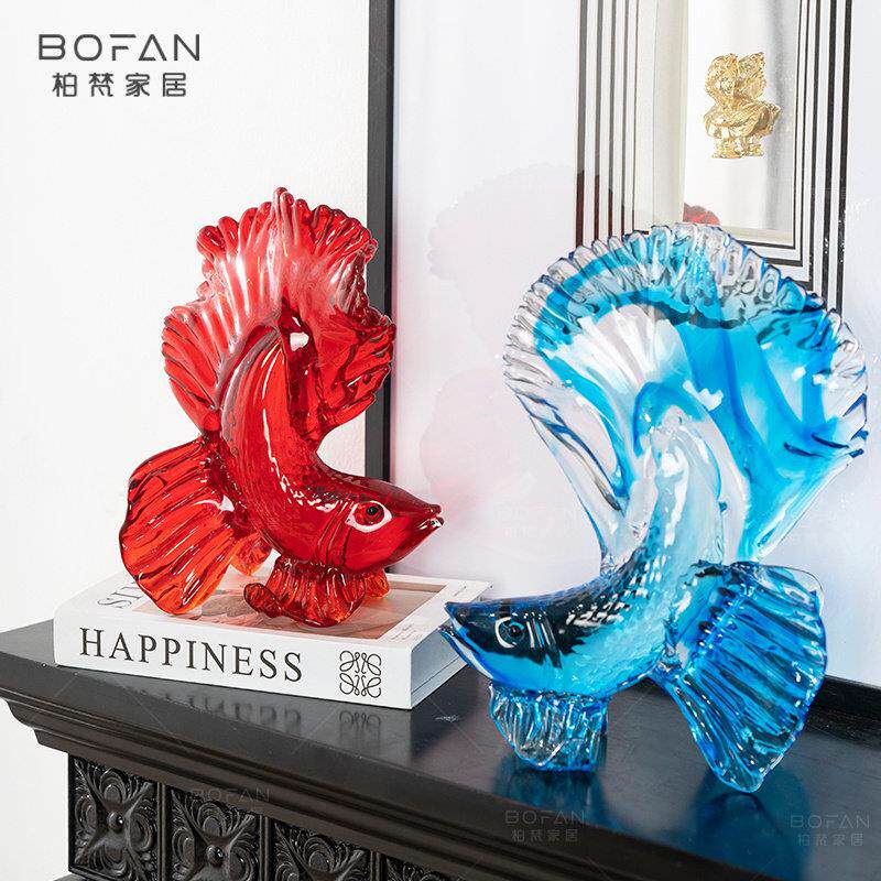 柏梵轻奢创意琉璃红锦鲤摆件客厅酒柜玄关年年有鱼喜庆装饰品摆设