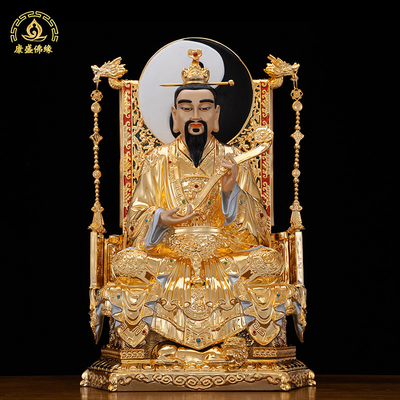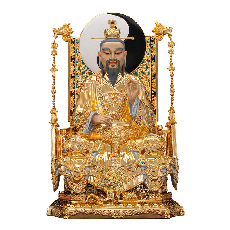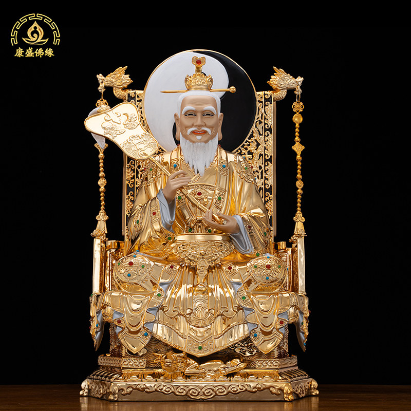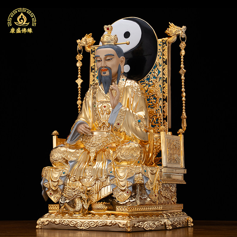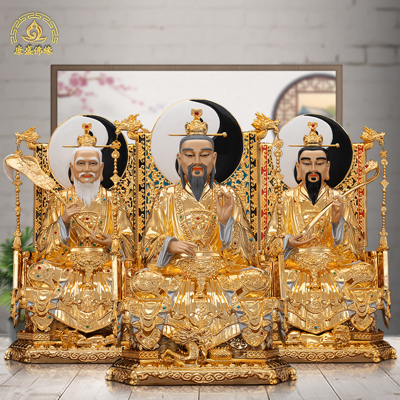 台湾黄铜三清像太上老君元始天尊灵宝天尊祖师爷三清金幡铜像摆件