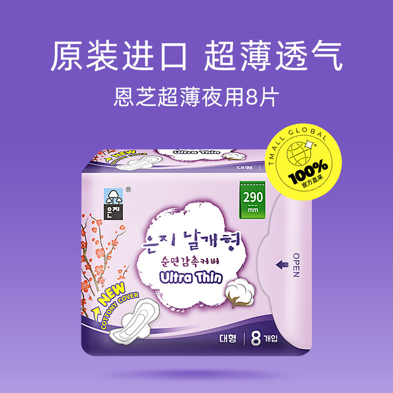 【自营】eunjee恩芝韩国超薄干爽无荧光剂夜用29cm*8片护翼卫生巾