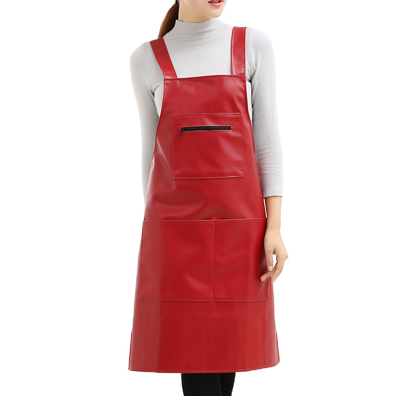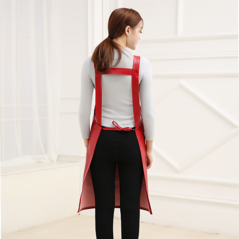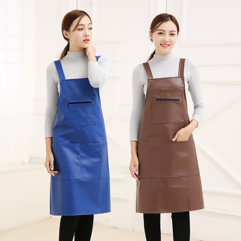 PU皮女围裙防水防油家用厨房做饭罩衣大人软皮革食堂专用工作服男
