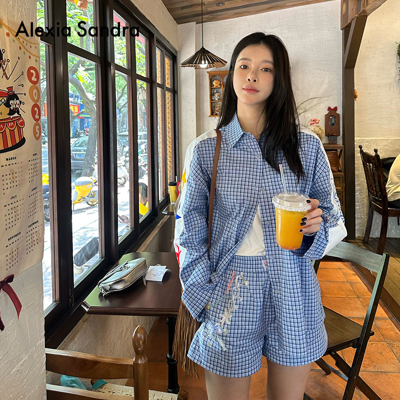 瓦瓦妮莎同款-Alexia Sandra海洋奇遇破碎链条印花格纹短裤女