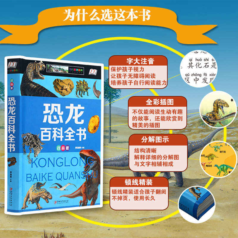 恐龙百科全书注音版儿童恐龙大百科侏罗纪世界霸王龙珍贵化石认知介绍少儿恐龙世界适合男孩的拼音版读物小学生一二三年级课外书