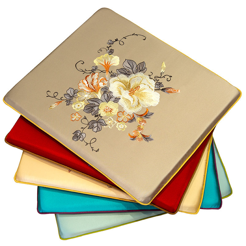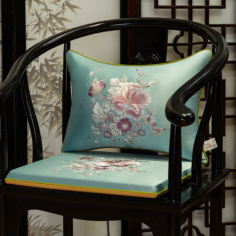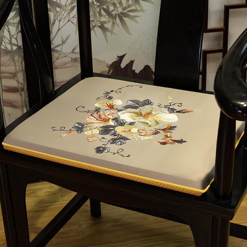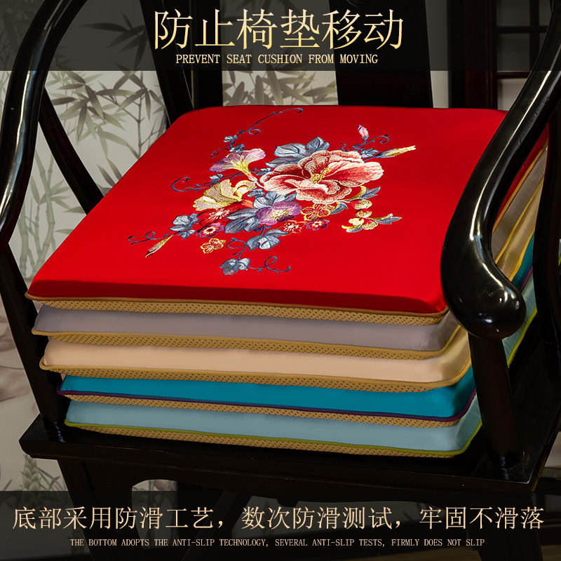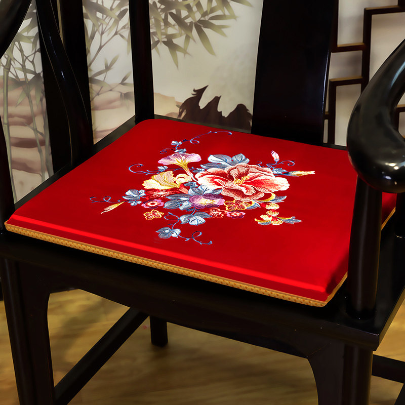 中式椅垫花朵刺绣古典沙发坐垫防滑薄款定制圈椅太师椅餐椅海绵垫