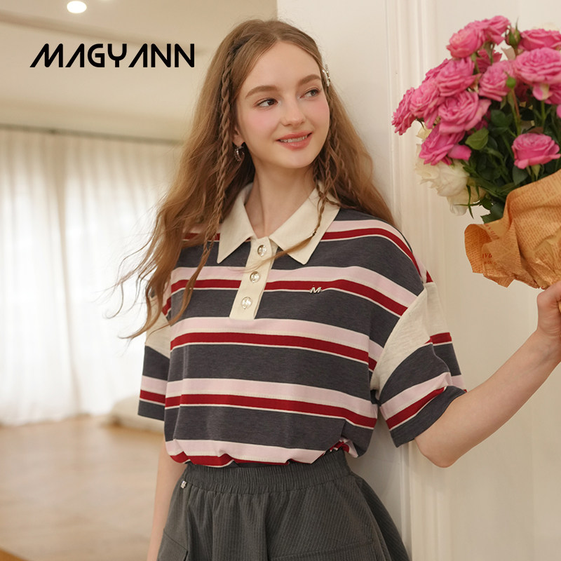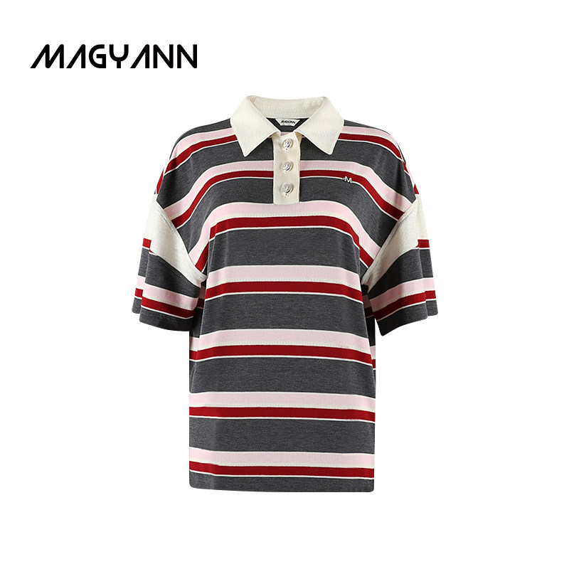 【叛逆岛屿】Magyann设计师原创2026夏休闲拼接斜袖POLO衫短袖T恤