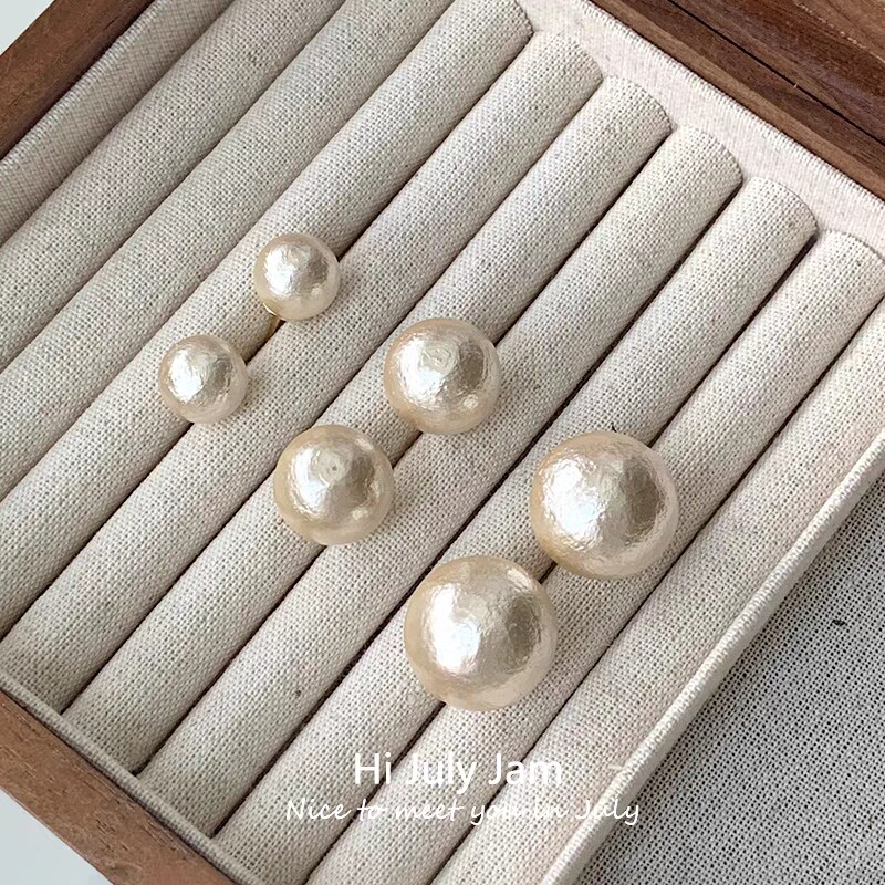 欧比雅比通体银2024新款棉花珠白色珍珠复古Mona同款耳钉女耳饰