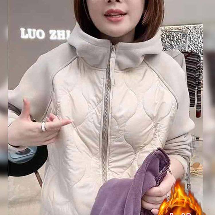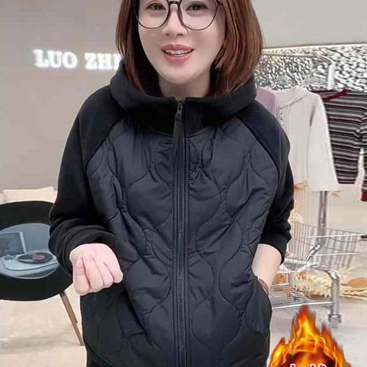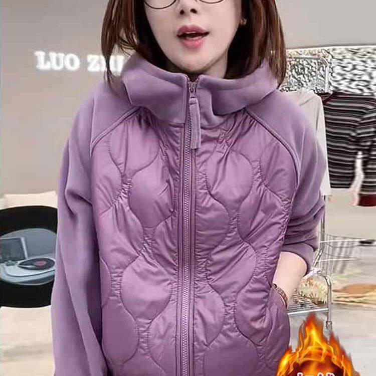 2025秋冬新款女士百搭显瘦保暖防风奥粒绒卫衣撞色连帽加厚外套潮