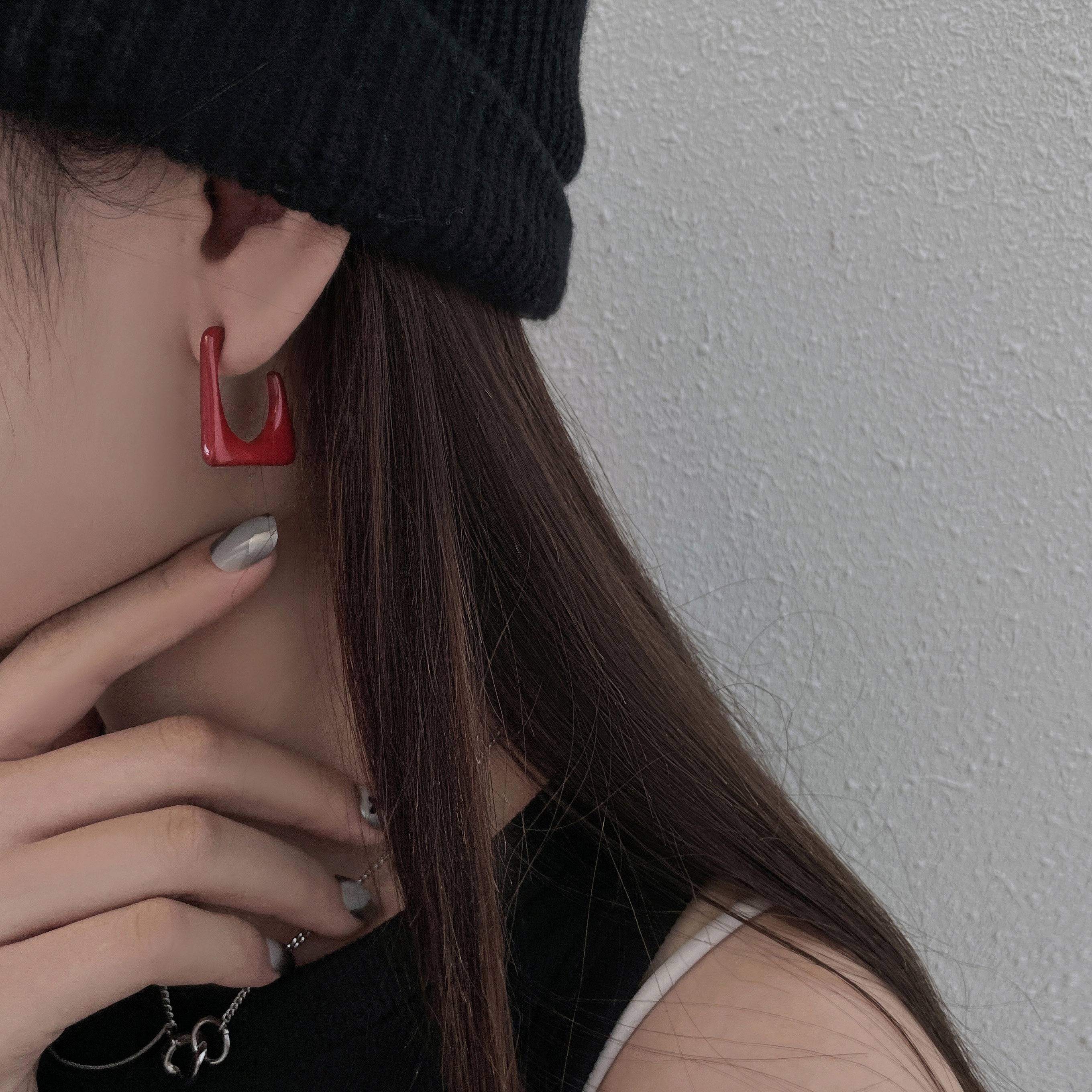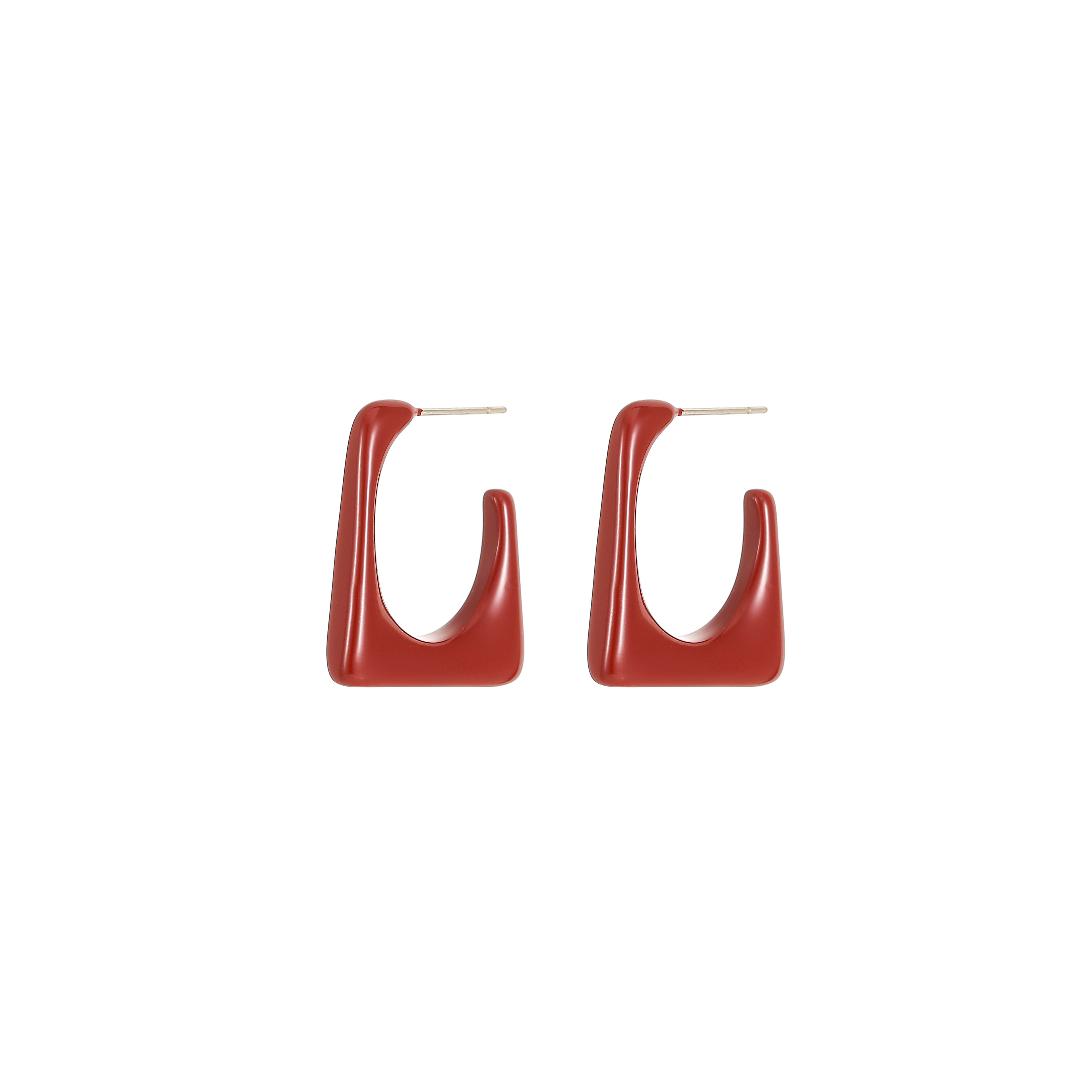 欧比雅比方形酒红色耳饰银针个性耳钉小众设计高级感气质耳环潮女