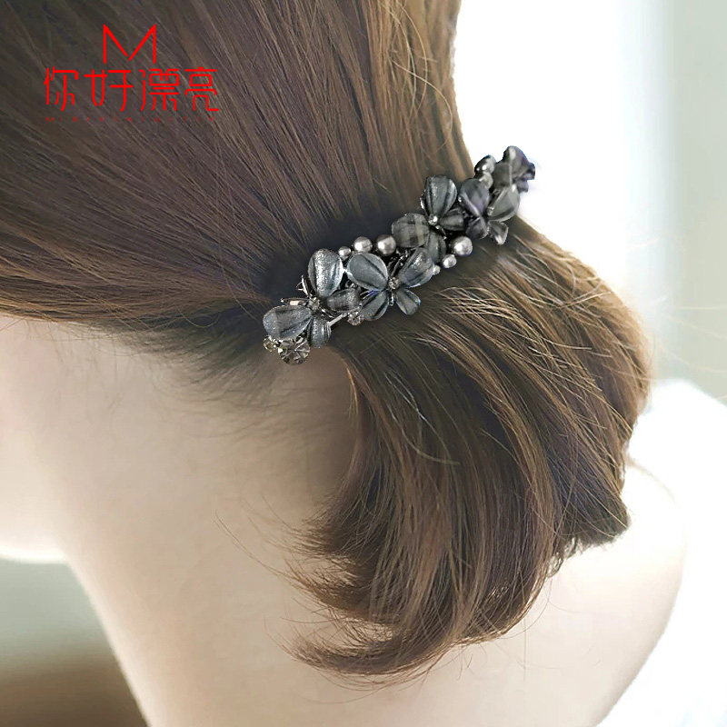 水钻蝴蝶马尾夹头饰优雅成人大发夹百搭弹簧横夹发卡妈妈款发饰