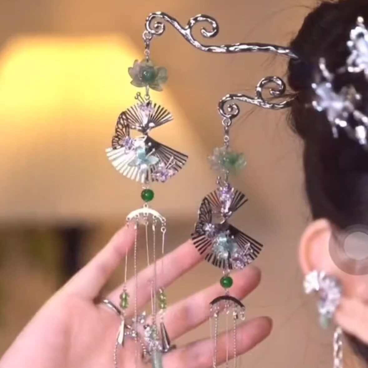 新中式玫瑰扇子流苏发簪高级感发钗国风清冷感步摇新款盘发头饰女