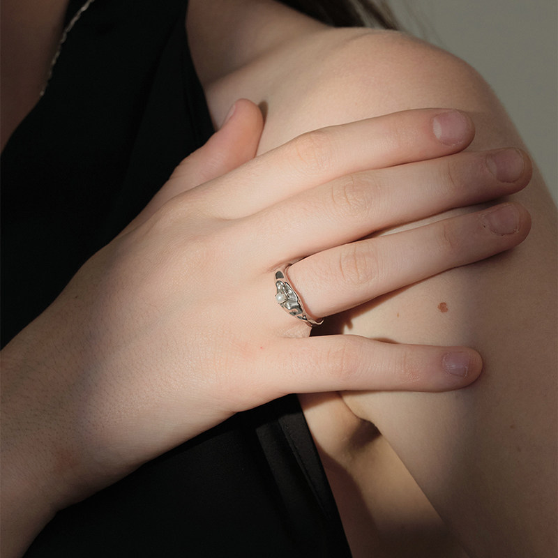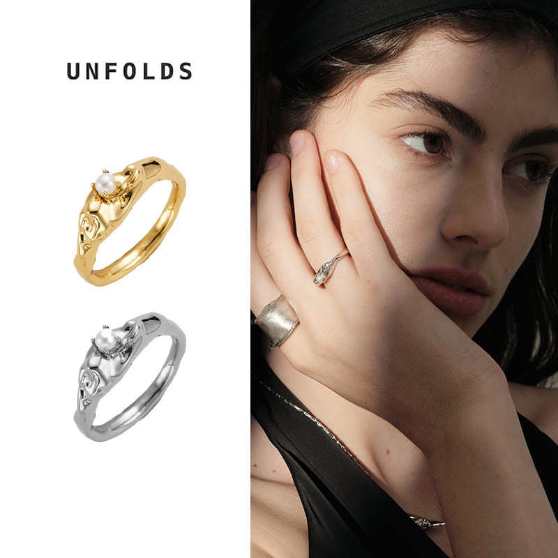 Unfolds浮舟天然珍珠戒指小众设计欧美轻奢复古气质指环女