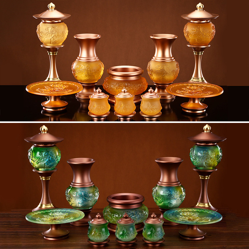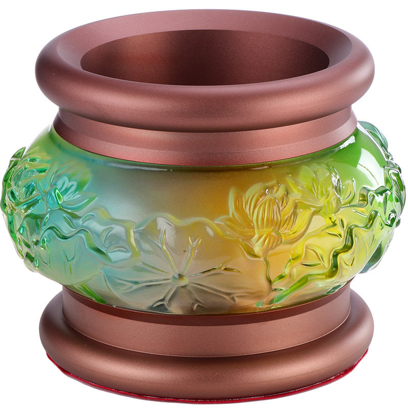 圆通佛具水琉璃香炉熏香家用室内佛前供佛观音浮雕莲花合金小香炉
