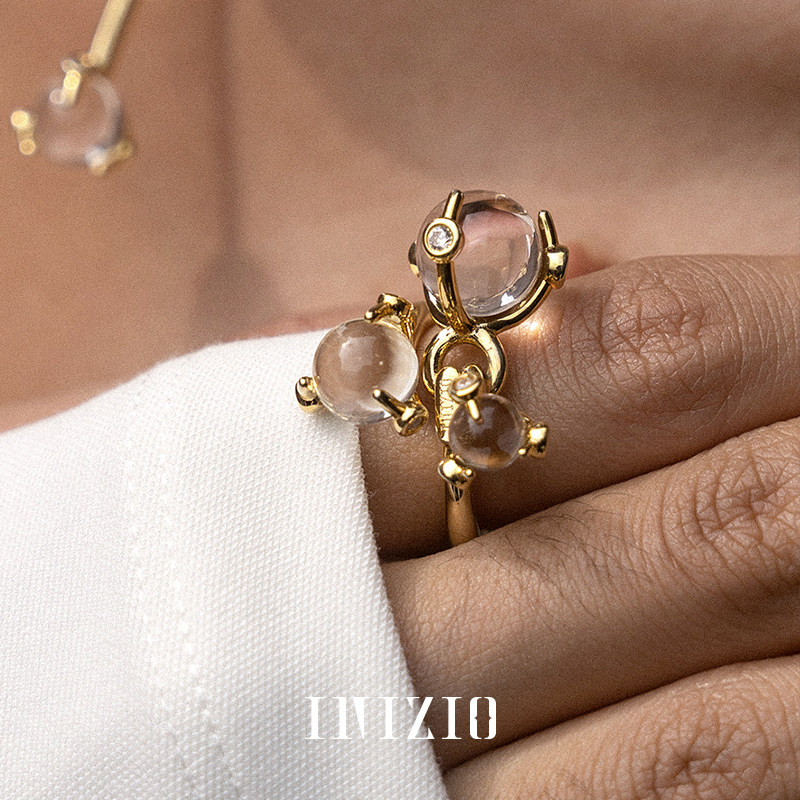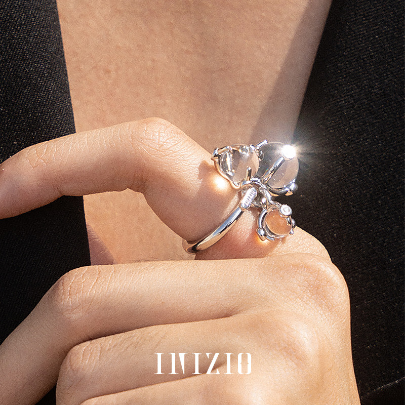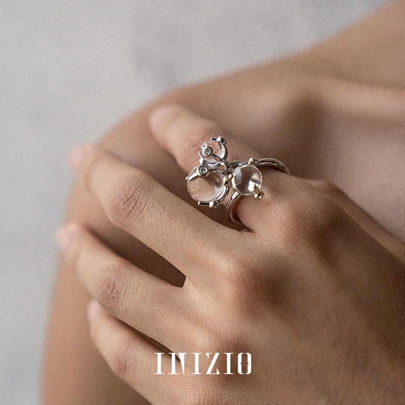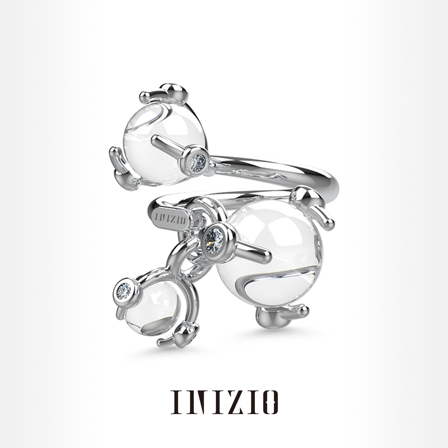 INIZIO 光启系列 白水晶光启之结戒指原创小众设计款气质开口戒指