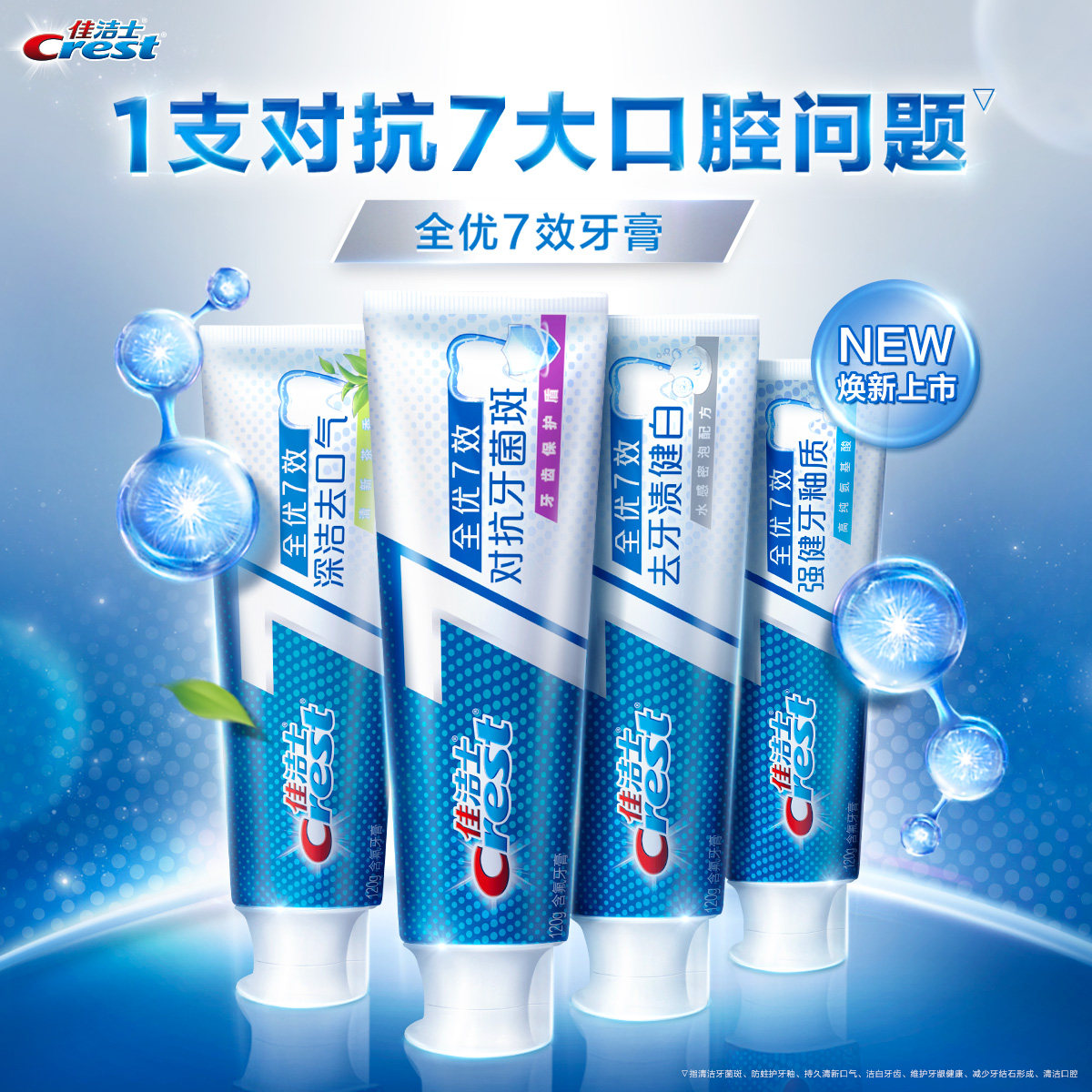 佳洁士牙膏全优7效口气清新口腔清洁强健牙釉质健白牙膏