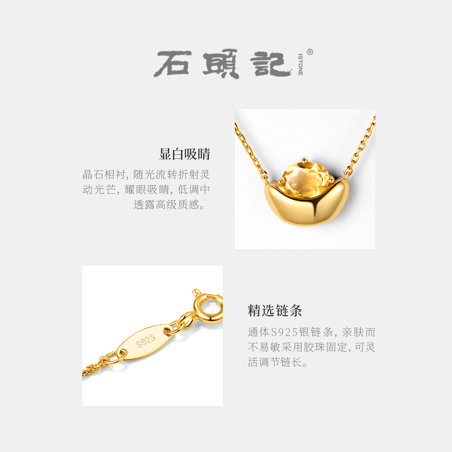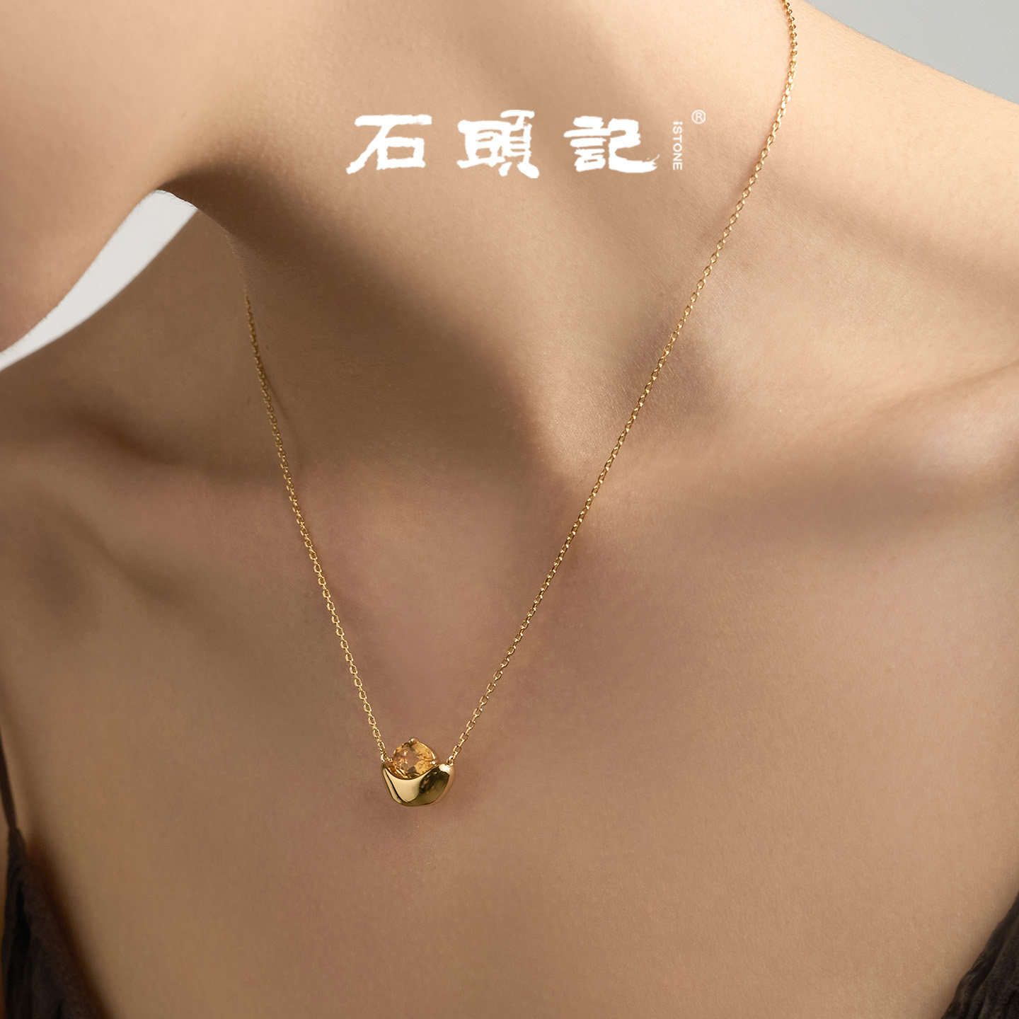 iSTONE/石头记元宝纯银项链女配饰秋冬黄水晶精致颈链锁骨链吊坠