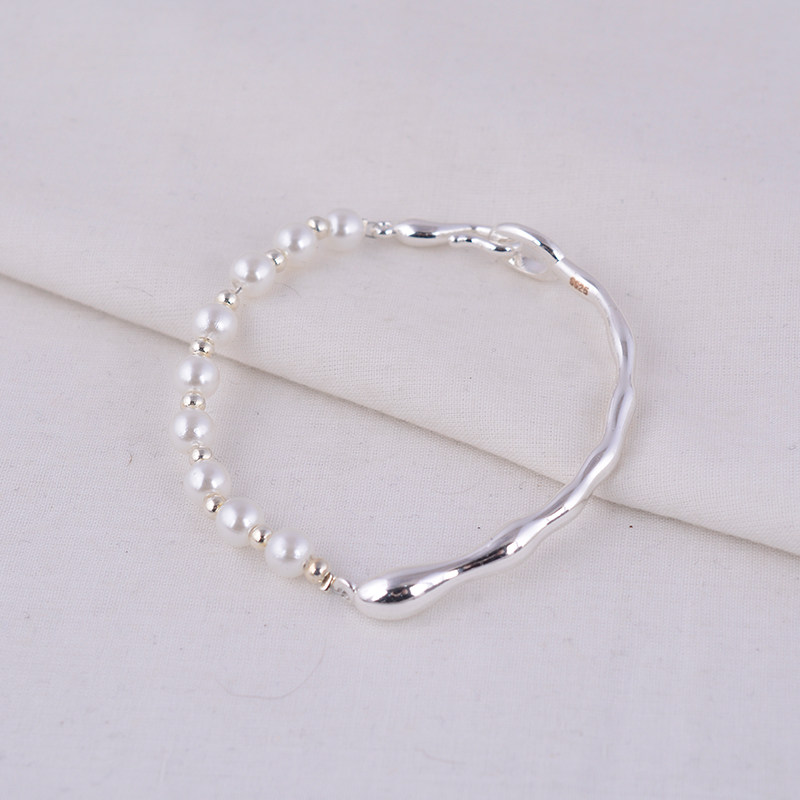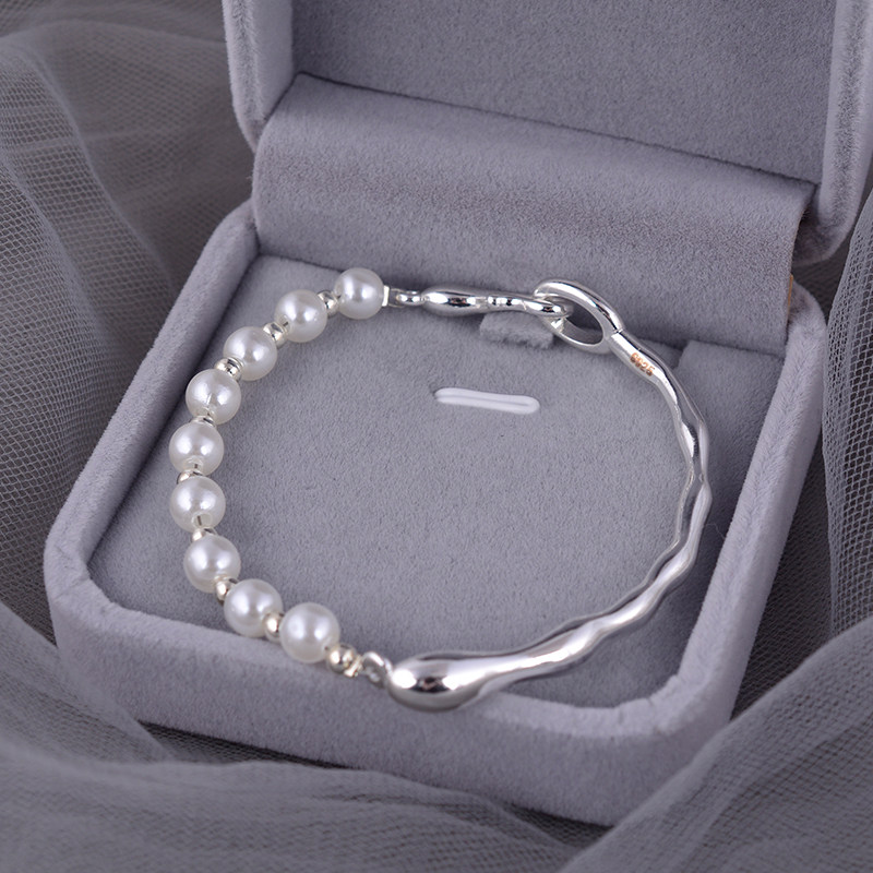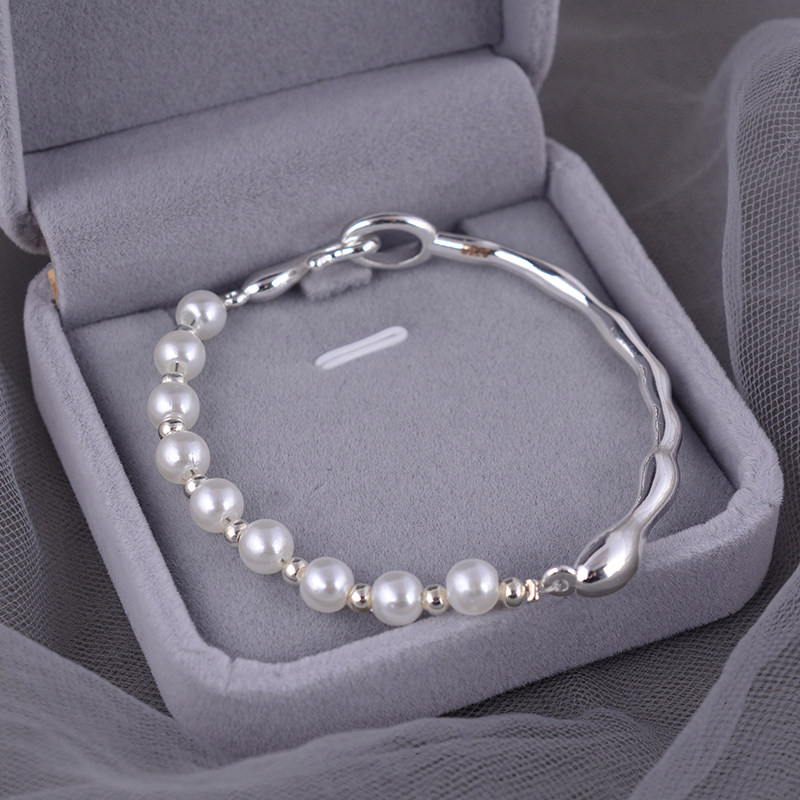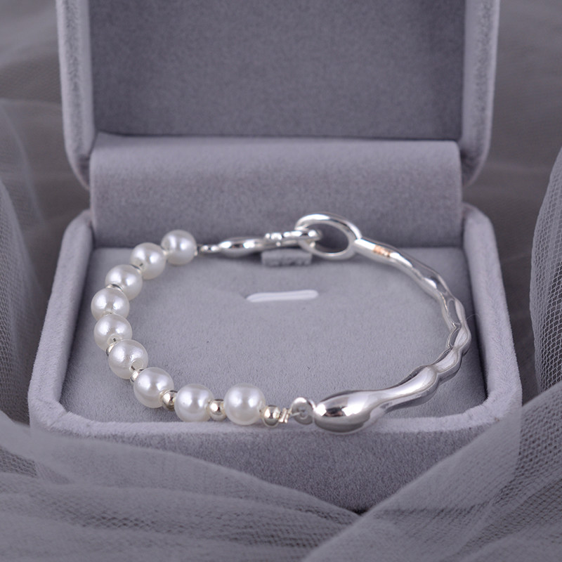 925纯银半镯子巴洛克珍珠手链女小众设计复古手环轻奢高级感手镯