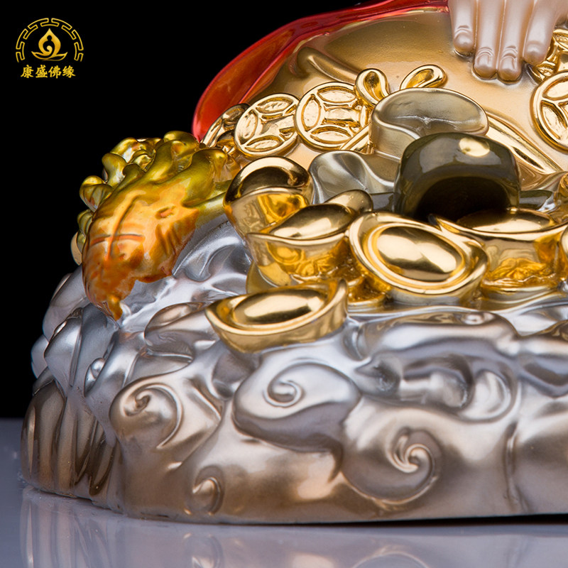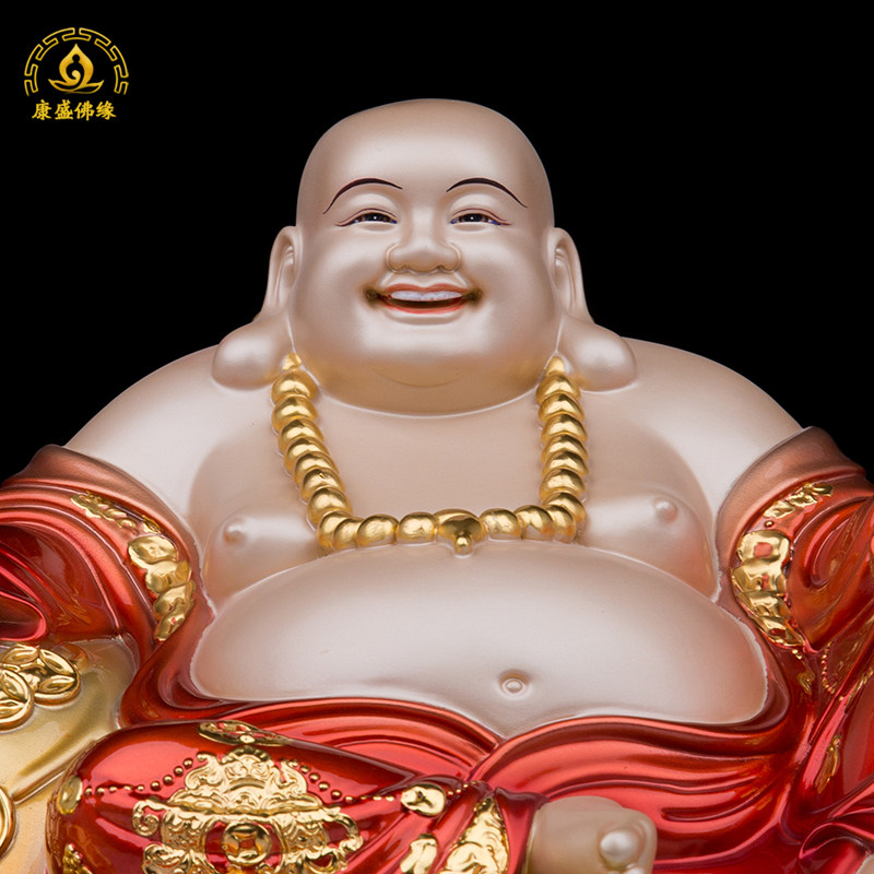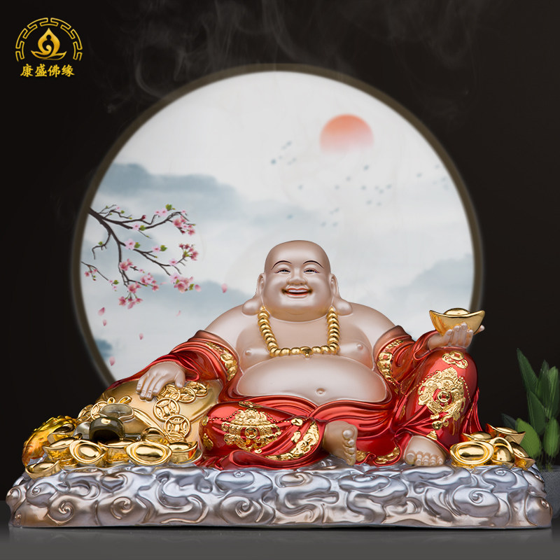弥勒佛大肚佛像笑佛纯铜热着色彩绘托元宝坐卧款家用佛堂客厅摆件