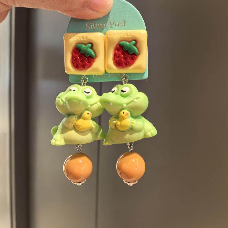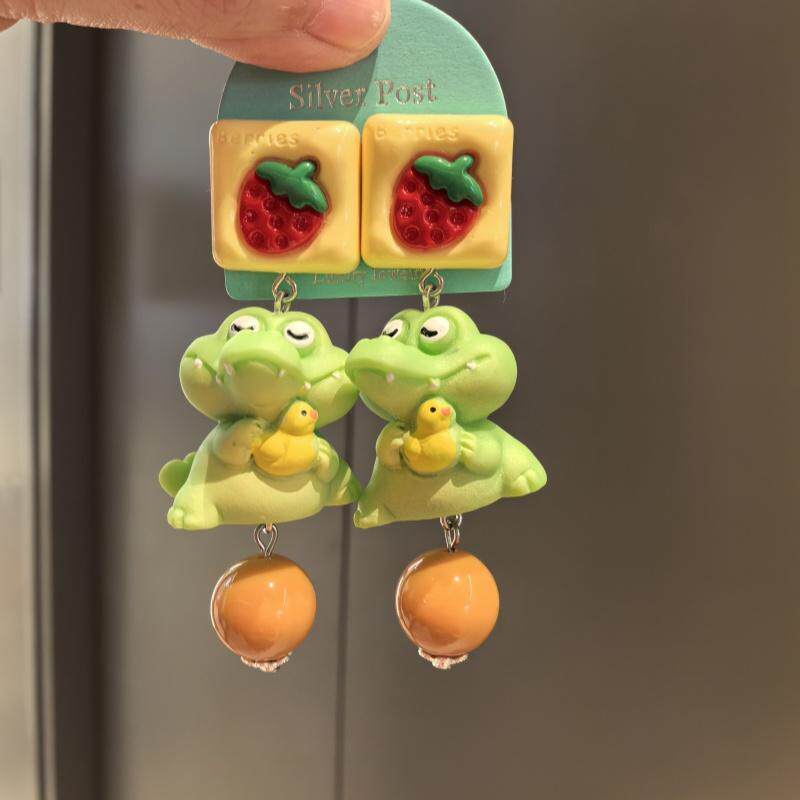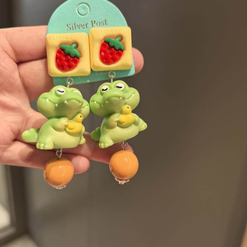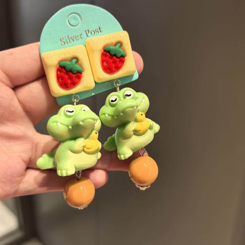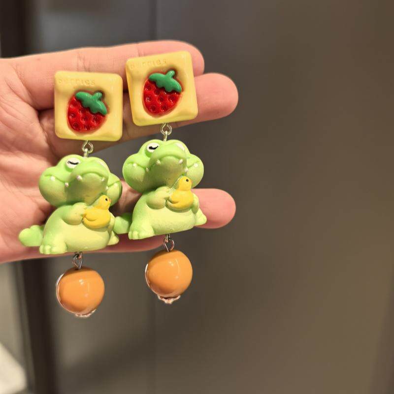 沐琪原创手作童趣可爱小鳄鱼动物个性耳环无洞耳夹