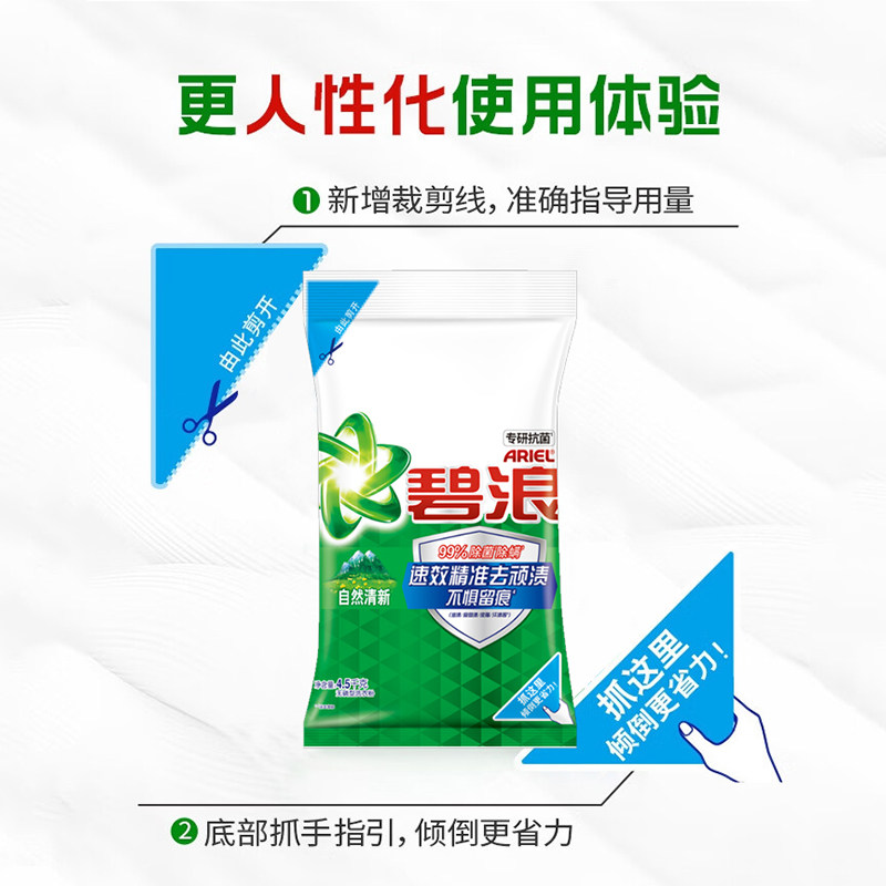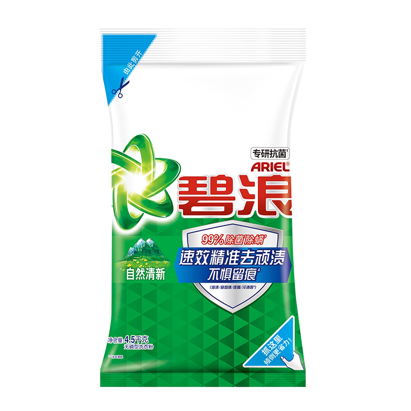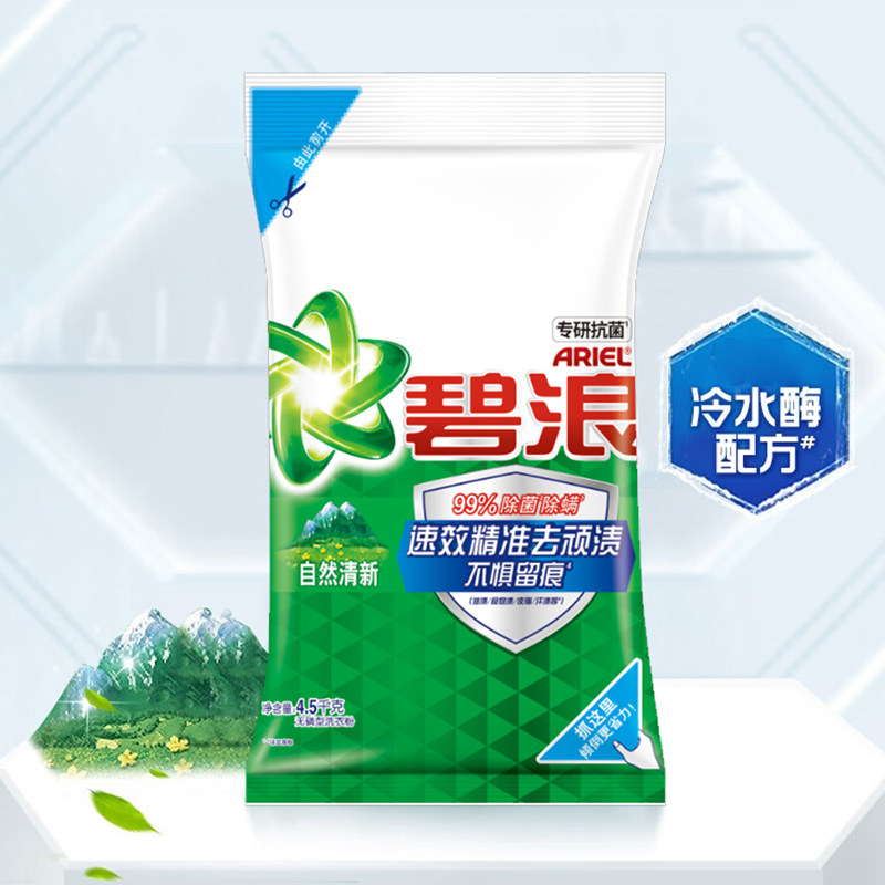 碧浪自然清新洗衣粉9斤洁净除菌除螨去渍大包装家庭装4.5千克正品