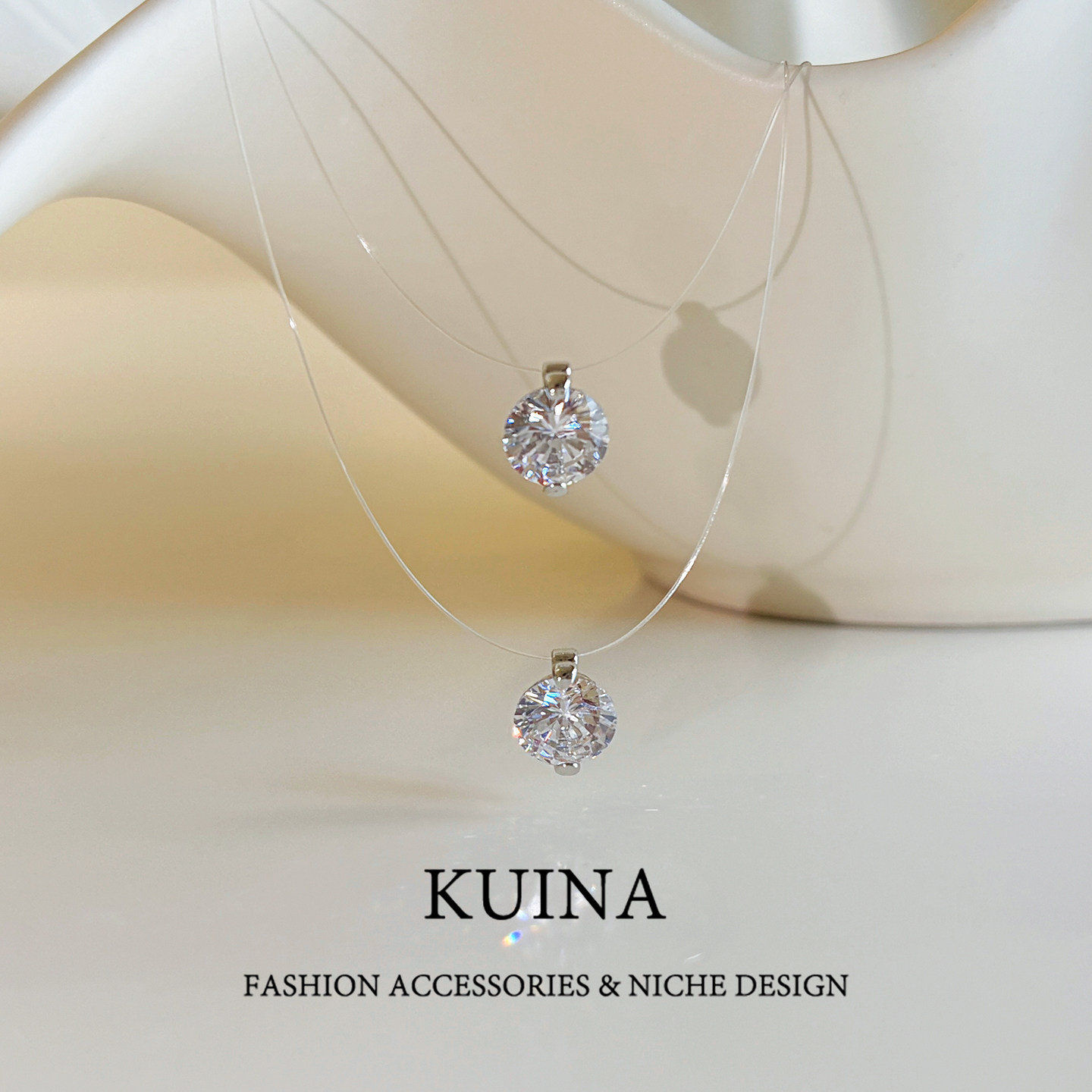 轻奢高级人鱼之泪项链女简约叠戴颈链隐形鱼线闪钻锁骨链气质配饰