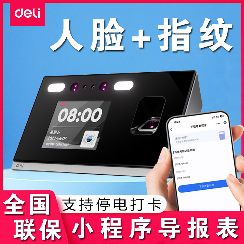 手机查看指纹人脸打卡机考勤机员工上下班刷脸签到自动报表