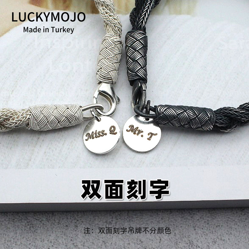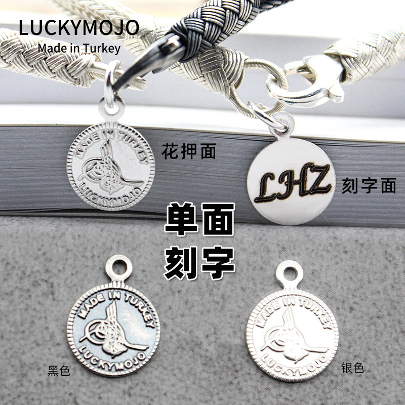 925纯银复古可刻字吊牌土耳其进口奥斯曼帝国花押手链配饰延长链