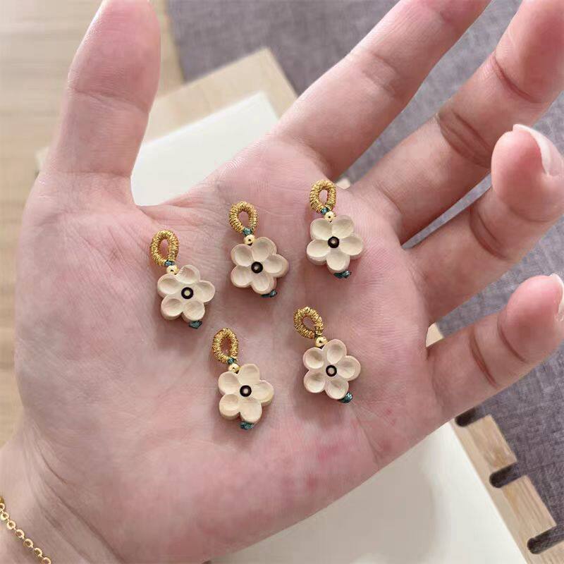 桃木雕刻diy配件文玩男女手串儿童宝串别针手脚链安饰品挂件梅花